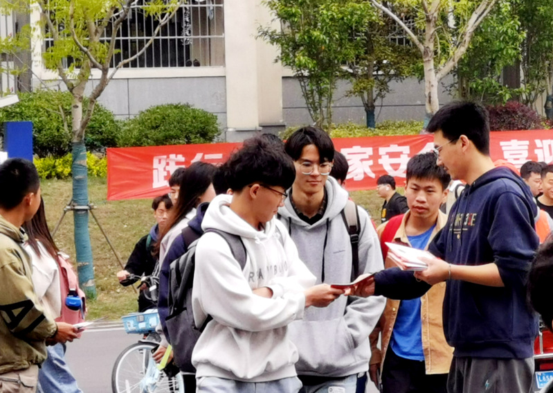 4月14日中午,在第六个全民国家安全教育日到来前夕,新蒲京娱乐场官网3245在长山校区校园内火热开展国家安全主题宣传教育活动,进一步增强广大师生的国家安全意识。