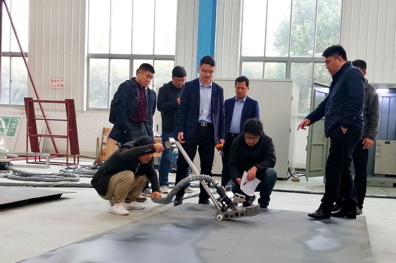 项目组根据合同和技术协议要求,现场对设备功能、性能、关键技术研究成果进行了展示和汇报,并与设备使用方达成了广泛的一致。上海外高桥造船有限公司工艺工法部副部长孙建志、内装部部长助理陈斌毅等领导和专家,在对项目设备现场试用并听取项目组研究汇报后一致认为:电磁感应加热矫平装备达到技术协议要求并同意设备验收。