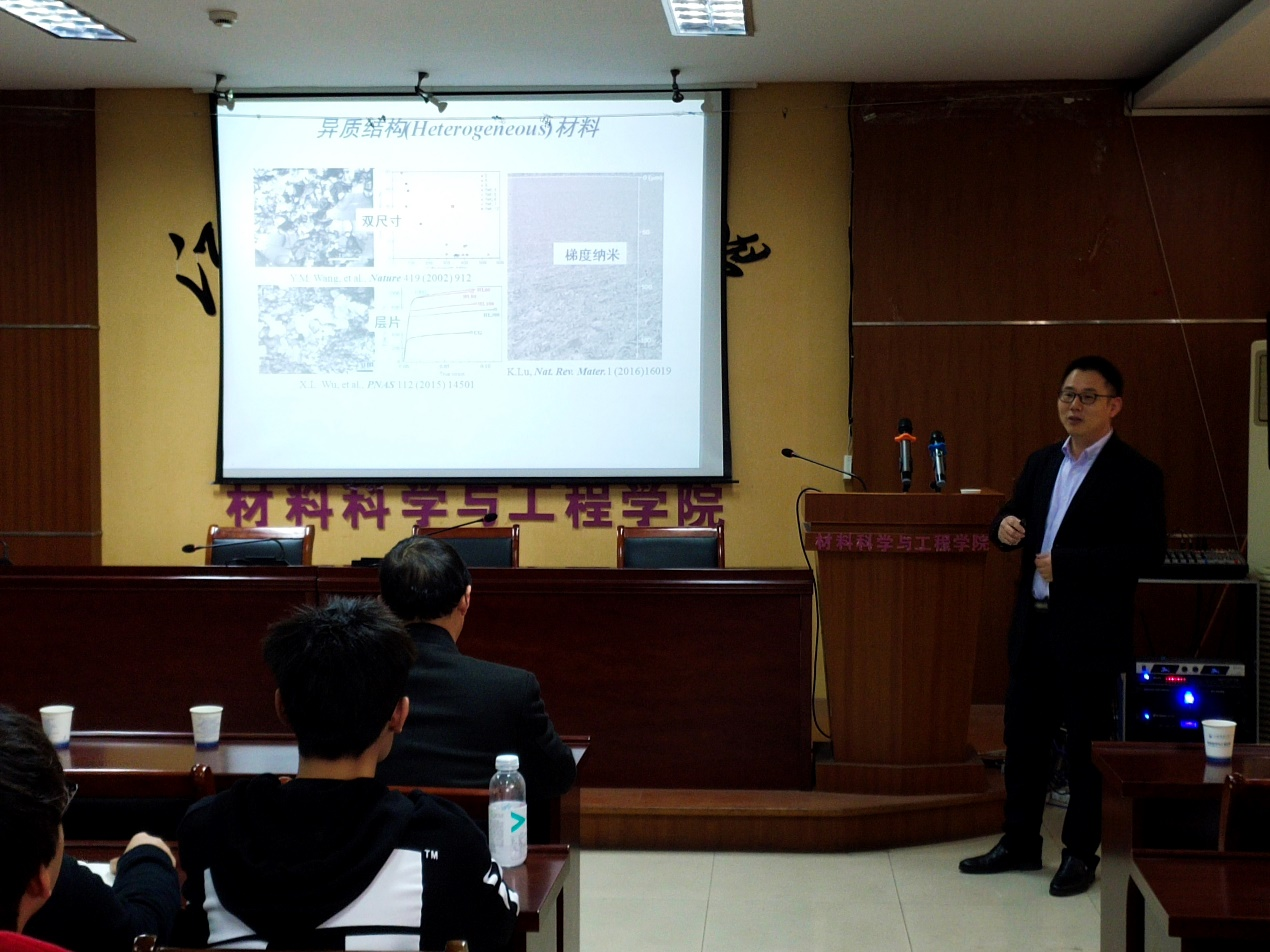 4月16日下午,应材料科学与工程学院邀请,西安稀有金属材料研究院常务副院长张于胜教授作“异质结构金属材料研发”的报告。材料科学与工程学院院长芦笙教授主持了本次报告会,学院多位教师和研究生参加了本次活动。