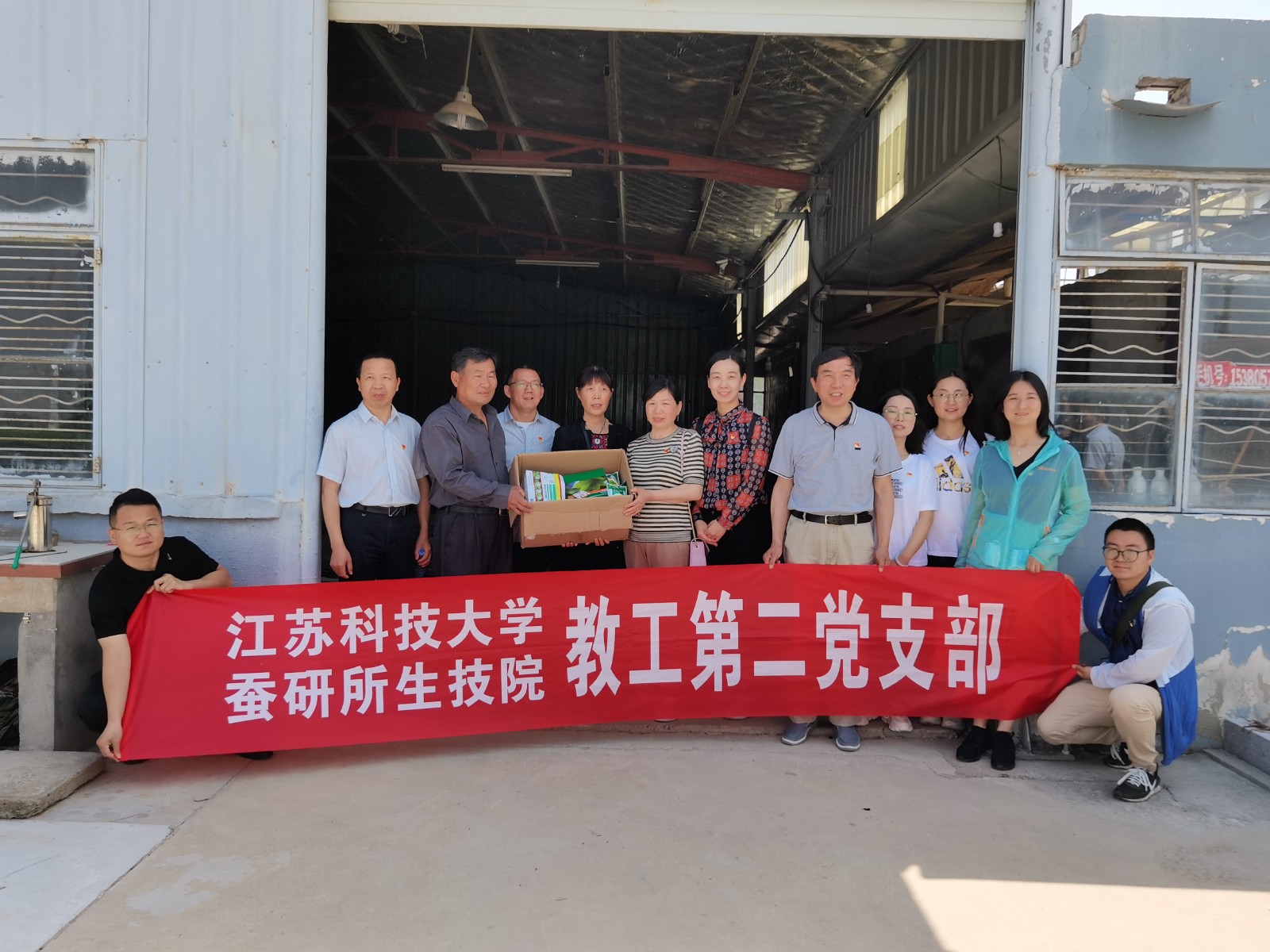 座谈结束后,两个支部一起参观了射阳县中共华中工委纪念馆,缅怀先烈。随后,又参观了当地正在建设的原种场以及蚕桑特色小镇特庸镇,就蚕桑资源的综合开发利用进行了合作交流。支部成员一行走访了当地的植桑养蚕大户,了解当地农户对主要栽培品种的评价以及栽培过程中遇到的问题,对蚕农在饲养过程中提出的问题进行现场答疑和指导。此外,还向蚕农赠送了蚕药并现场指导用药方法,耐心地向蚕农讲解蚕病综合防治的相关知识。