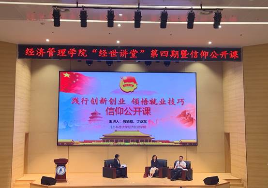 为庆祝党的百年华诞,从建党百年的伟大奋斗历程中汲取不断前行的智慧和力量,6月3日,经济管理学院于长山校区行政中心学术报告厅开展红色声音、时代精神—“经世讲堂”第四期暨信仰公开课活动。本期讲堂邀请了为国家建设发展默默奉献的两位行业界党员校友,开润股份联合创始人高晓敏,镇江邮局服务质量部主任、江苏省扶贫先进个人丁亚军,两位主讲人此次以1998届校友的身份“回家”,给同学们分享了个人成长经历,并结合创新创业和职业生涯规划分别给予了独到的指导和建议。经济管理学院关工委方贵村老师、党委副书记杨海涛、团委副书记周庆文、党员发展对象和入党积极分子参加了活动。