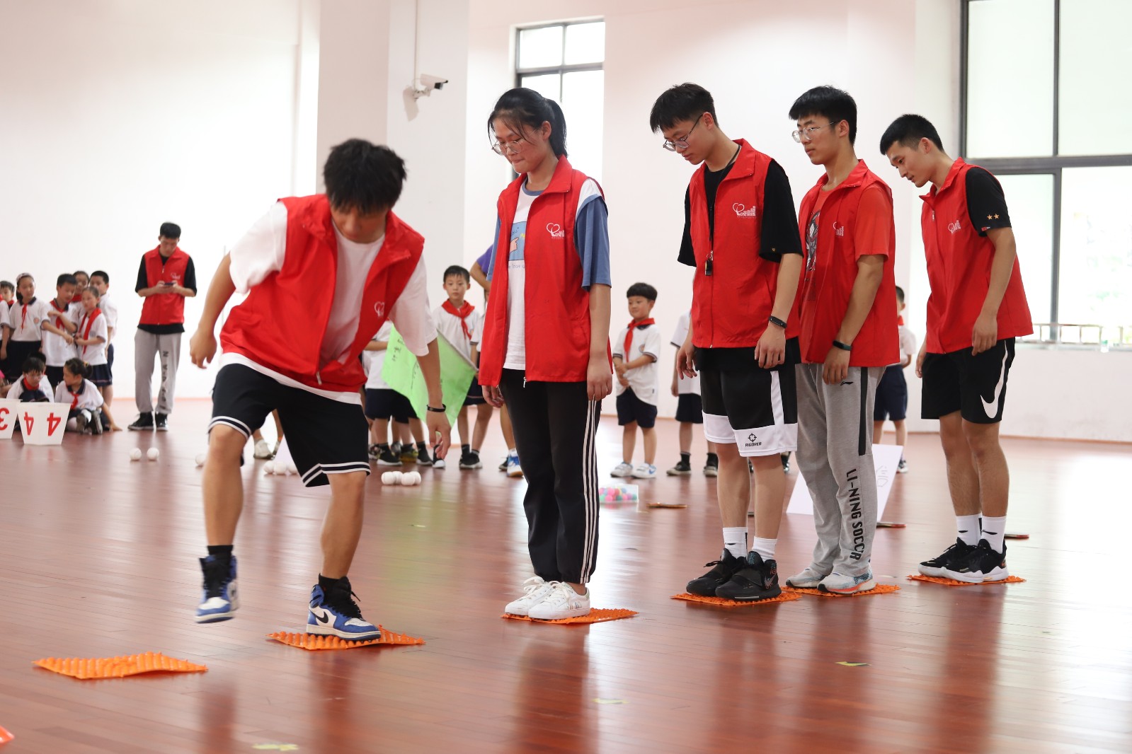 6月15日下午,新蒲京娱乐场官网3245体育学院的学生党员来到苏州外国语学校镇江校区,和百余名小学生共同举行以“传承红色基因,争做时代新人”为主题的“沉浸式”红色运动会,活动将体育运动和思政教育相融合,构成了“思政+体育”的独特育人方式,运动会将一个个比赛项目和革命情境相融合:“艰难长征路,南泥湾抢收,勇送鸡毛信,胜利会师……”,不仅让小学生们重温那段历史,有身临其境的感受,而且让红色文化更加鲜活,刻骨铭心。