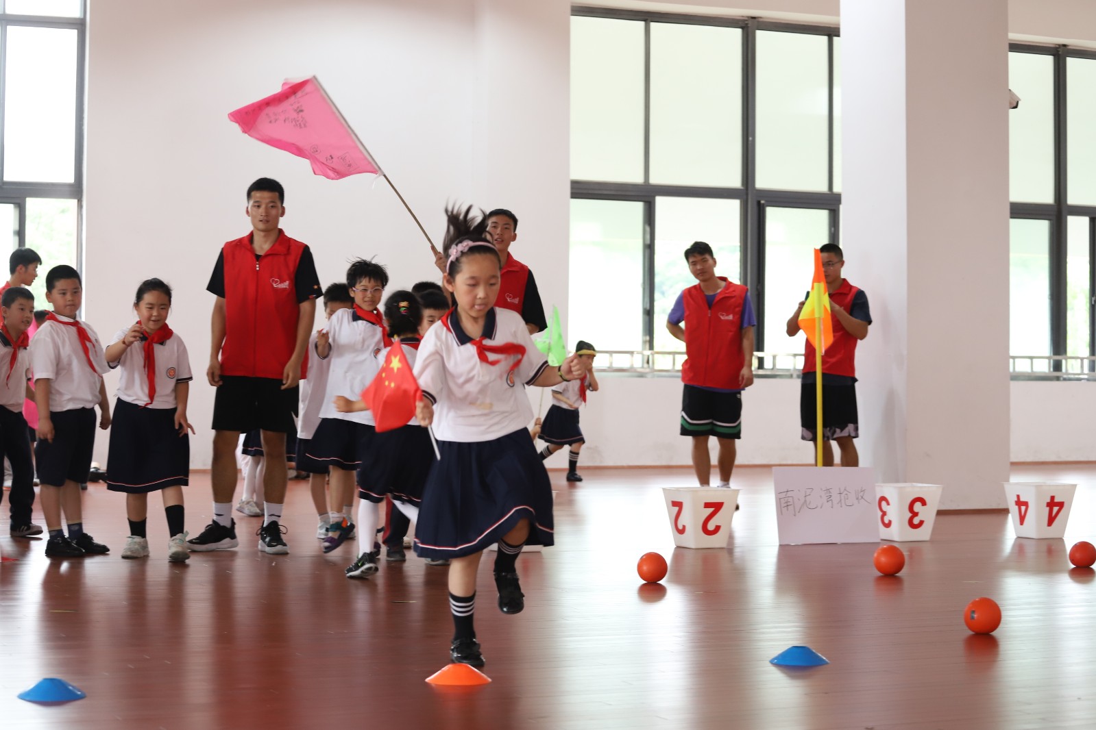 随着一声号令,运动会开始了,大哥哥大姐姐担任队长,拉队伍,亮队名,喊口号。震天的呐喊声中,8支小分队队员们个个精神抖擞、斗志昂扬。只见“老乡们”拿起箩筐,半蹲前行,抢收“南瓜”;“炸碉堡”的“战士们”则冒着敌人的炮火前行,虽然汗流浃背,却没有人中途放弃。“艰难长征路”“南泥湾抢收”“勇送鸡毛信”“英雄炸碉堡”“飞夺泸定桥”等一个个红色文化主题的运动项目,唤起学生们对那段峥嵘岁月的回忆和崇敬。小学生们继承革命前辈不怕苦难的精神,穿越到战火纷飞的艰苦年代,化身为奋勇前进的红军战士,体验红军战士“保证完成任务”的信念和钢铁般的意志,在红色运动中锻炼了敢于竞争取胜的战斗力、团队协作能力、面对困难不屈不挠的专注力和以坚强意志完成任务的执行力。最后8个小分队的队员们终于闯过重重关卡,胜利会师。