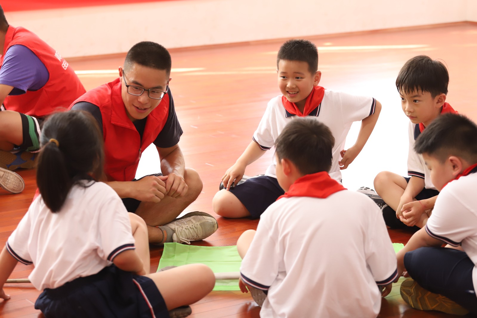 大学生党员黄莉一边擦着汗水,一边激动地说:“组织这场红色运动会,创新了教育方式,希望小学生在体会运动快乐之时,沉浸式地体验中国共产党的伟大征程,从小立志听党话,永远跟党走,更加珍惜今天来之不易的幸福生活。”