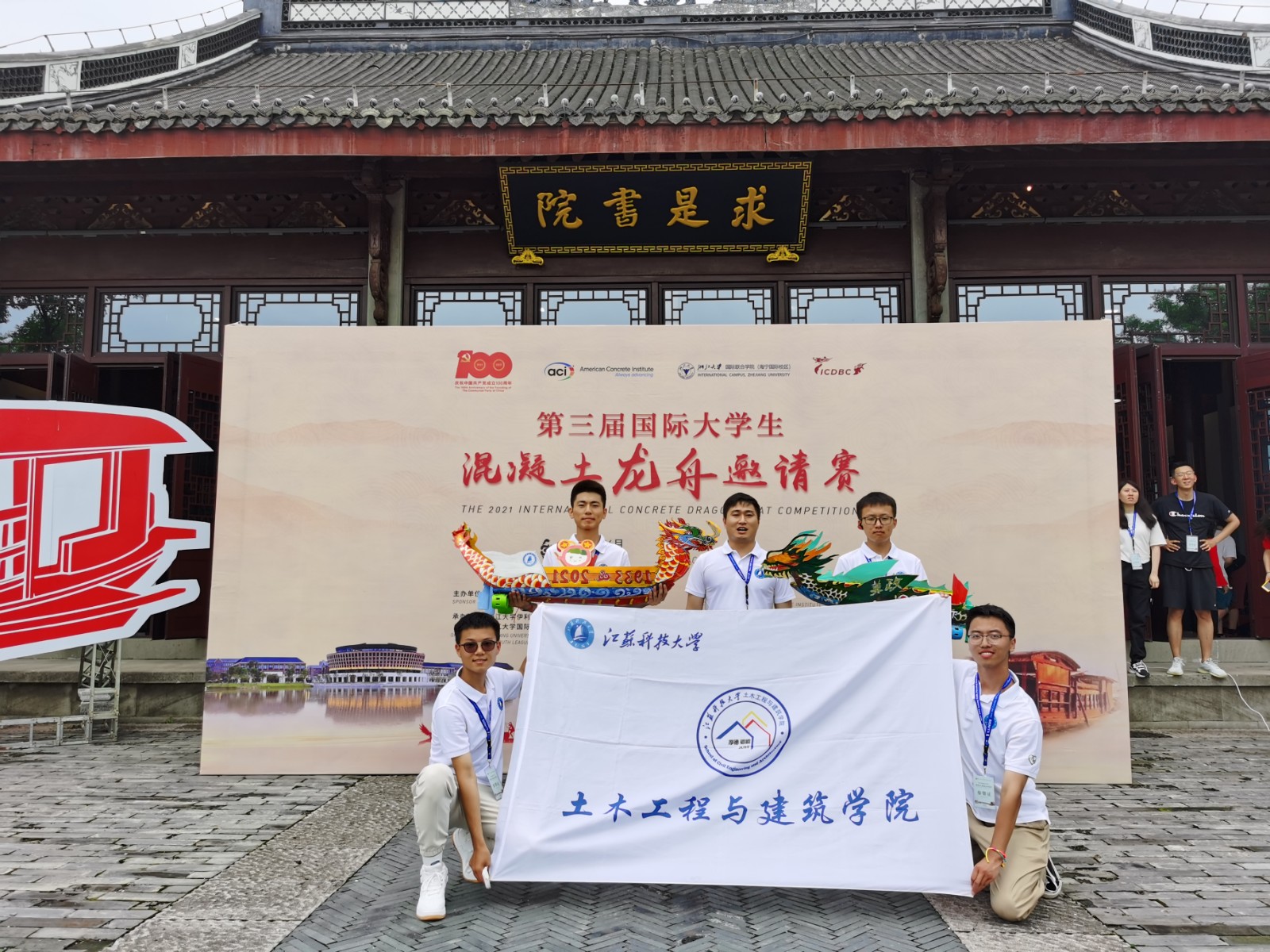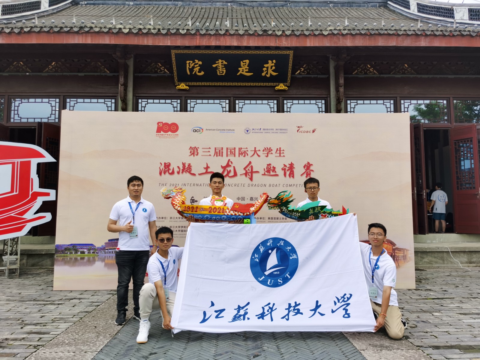 2021年6月14日,第三届国际大学生混凝土龙舟邀请赛在浙江大学海宁校区成功举办。土木工程与建筑学院吴明、王续尧、高林、朱颂强、付广宝所制作的“美政号”龙舟和由郭耀耀、杨春雨、姜芃旭、葛一鸣、邱智所制作的“蛟龙号”龙舟在张圣菊老师和韩建康老师的指导下,在此次大赛中分别获得了三等奖和创新奖的好成绩。