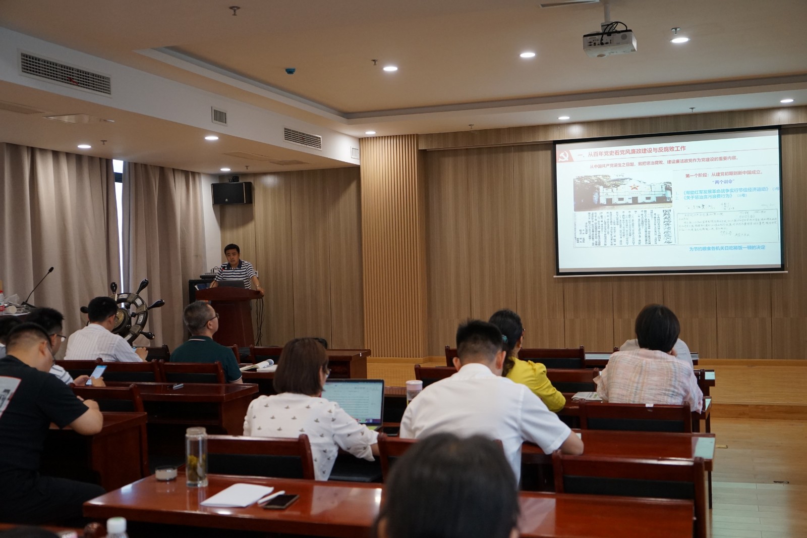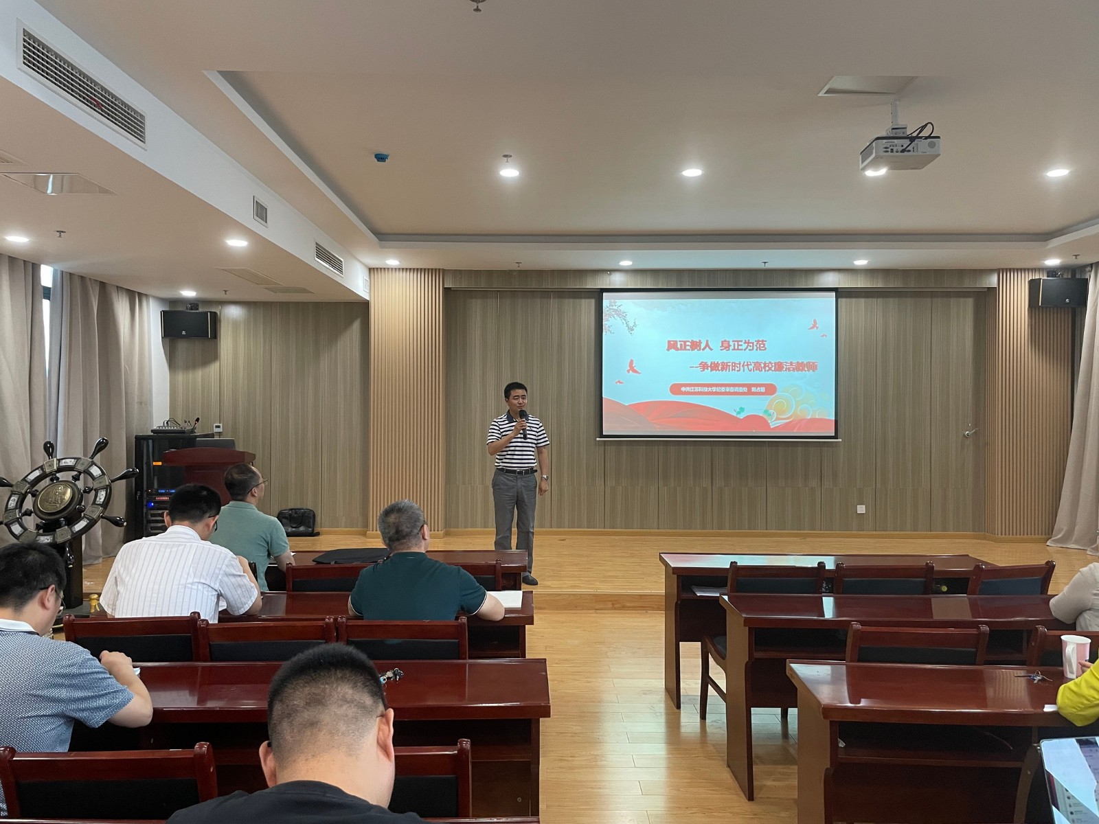 讲座分为“建党100周年—一脉相承从严治党”、“明晰形势—体制改革助力发展”、“身正为范—立心铸魂振兴伟业”三大主题,以党的历史为主线贯穿全篇,从党的五大选举产生出第一届中央监察委员会到当前反腐败斗争的复杂形势,最后联系到我们高校教师,号召大家要把党规党纪牢记心中,做新时代合格党员。主题鲜明、内容丰富,使参加活动的党员干部受益匪浅。