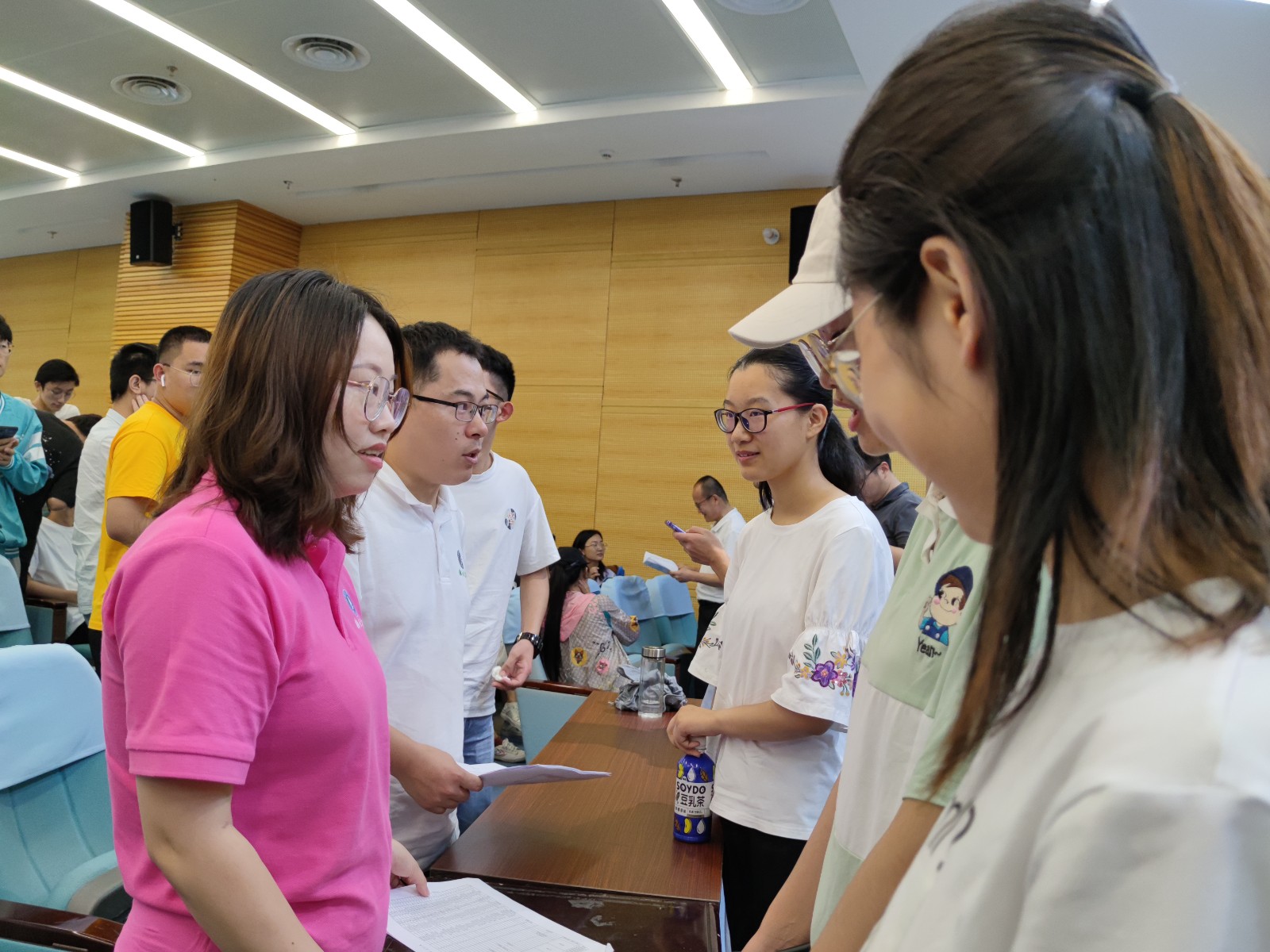 会后,各团队负责人与2018级学生在现场亲切交谈,同学们就学校选择、考研备考等方面进行提问交流,学业导师们就大家提出的问题给予了详尽细致的解答。