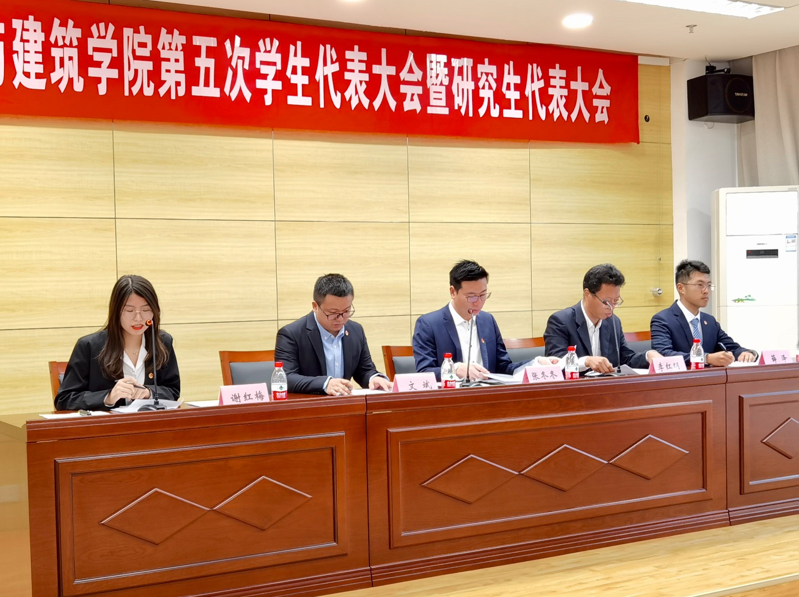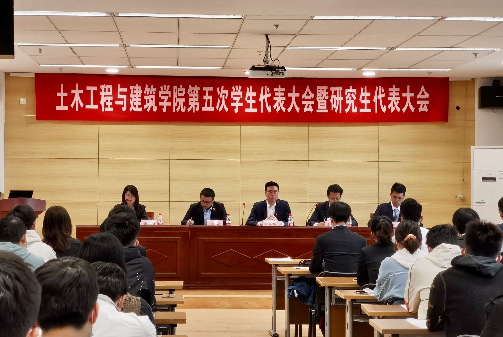 在顺利完成大会各项议程后,土木工程与建筑学院第五次学生代表大会暨研究生代表大会在校歌声中圆满闭幕。会议的成功举办,不仅仅为学院学生会注入了新的活力,并且进一步调动了大家的工作热情。从主席团成员的积极表现可以看出,学生会是一个汇聚着无限青春、汇聚正能量的地方。希望全体同学真心实意地支持学生会干部的各项工作、积极配合。相信经过大家的共同努力,校园生活将更加有趣、更有特色!