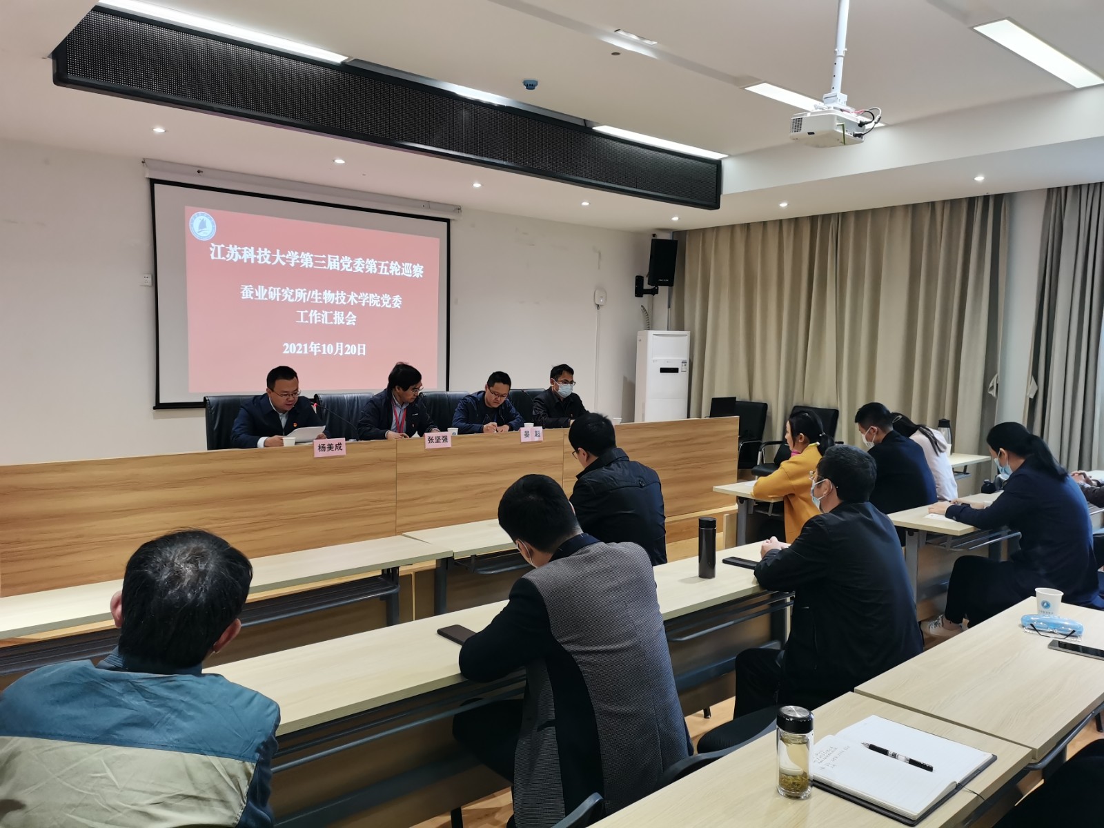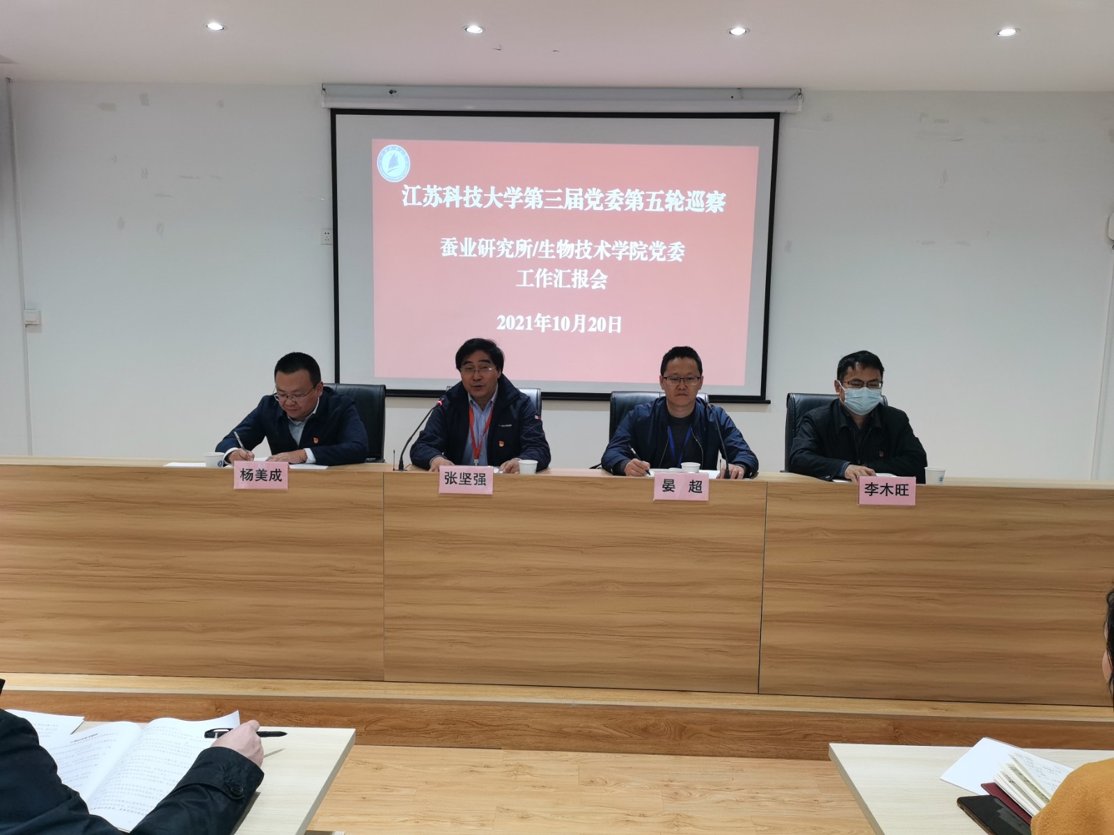 根据新蒲京娱乐场官网3245第三届党委第五轮巡察工作要求,10月20日下午,在生技楼330会议室,第一巡察组召开巡察蚕业研究所、生物技术学院党委工作汇报会。会议由第一巡察小组副组长晏超主持,第一巡察组副组长、第一巡察小组组长张坚强,第一巡察小组全体成员,蚕业研究所、生物技术学院党委领导班子成员,所院中层及教师代表参加了工作汇报会。