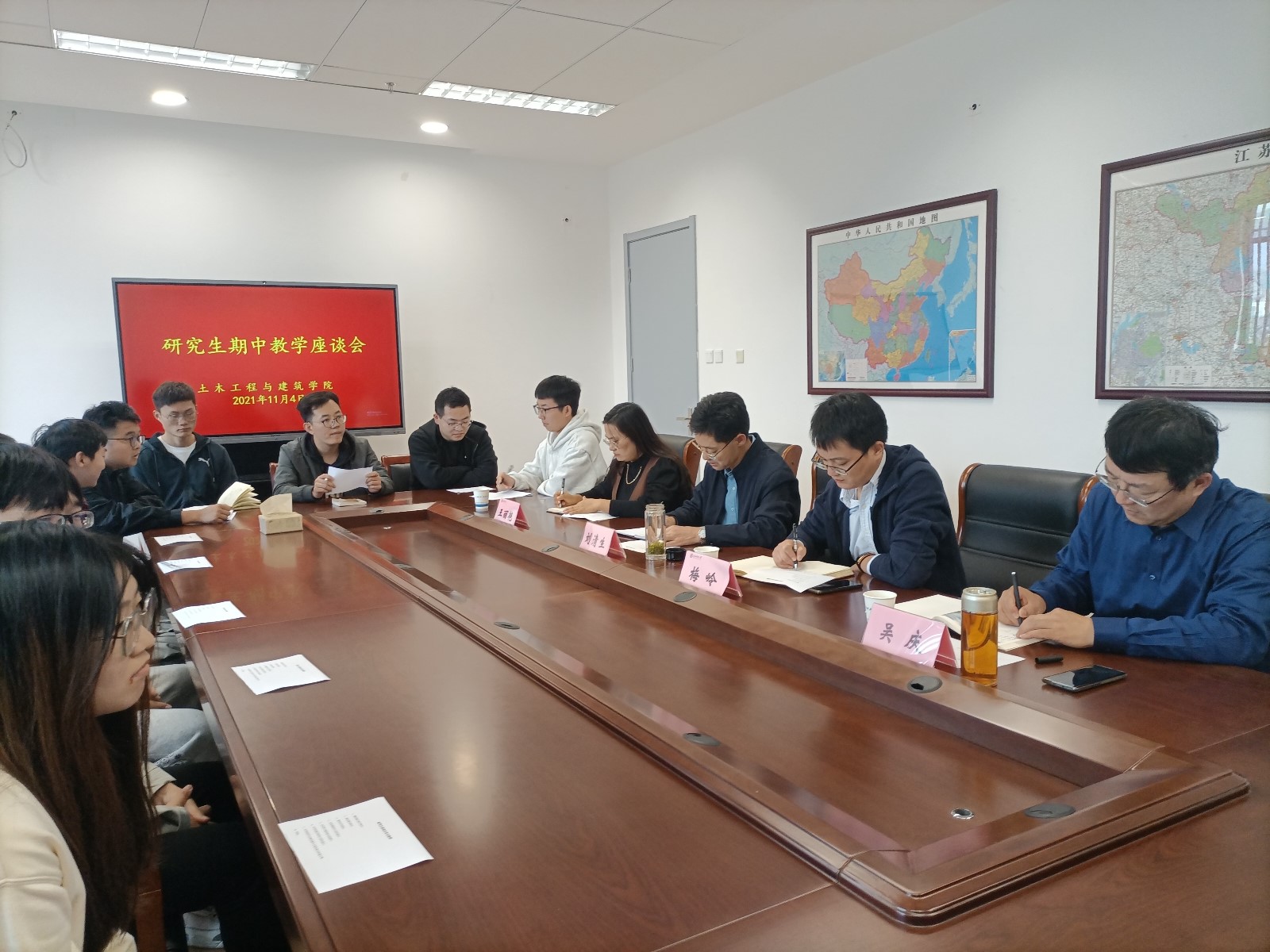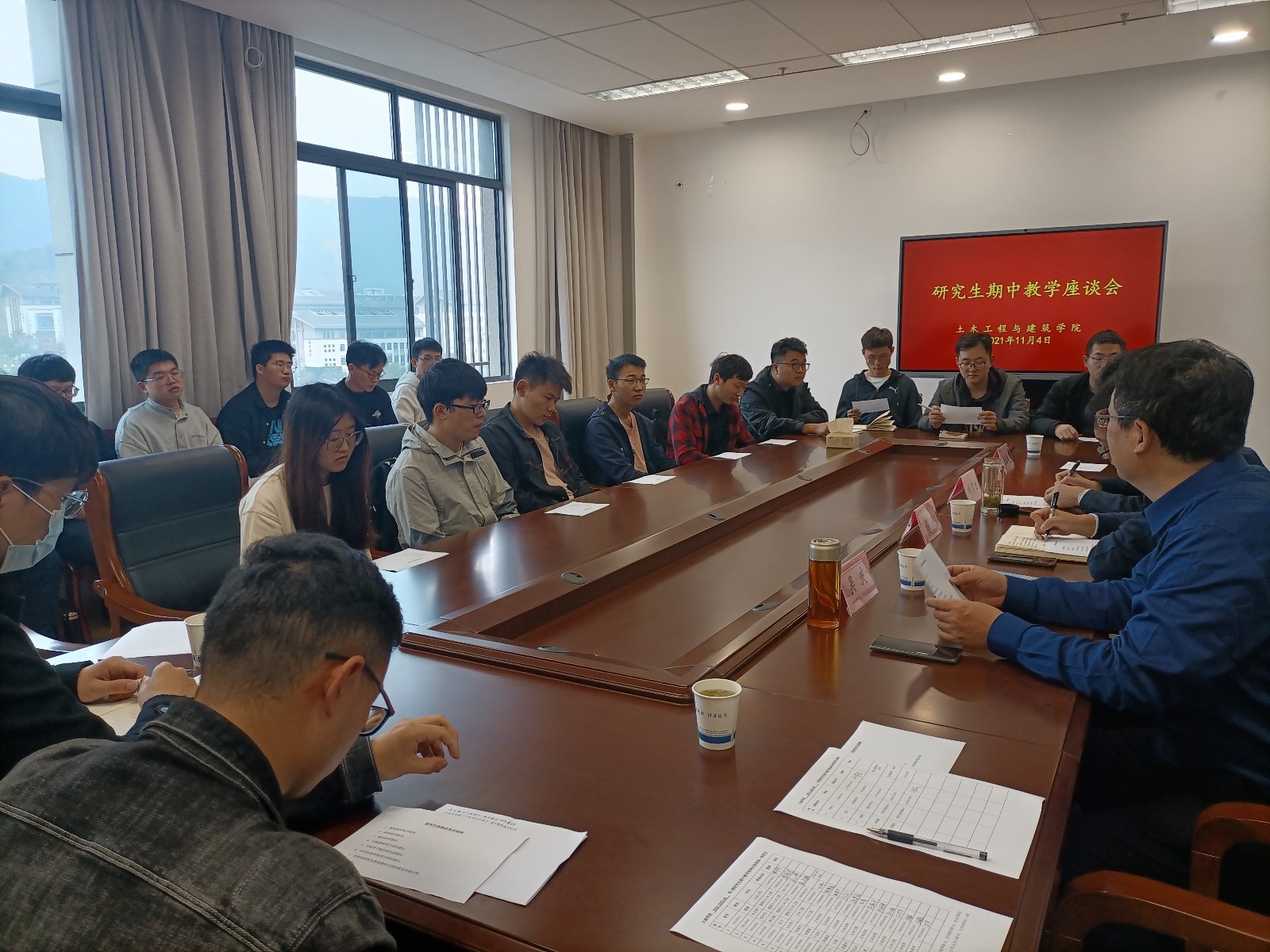 11月4日下午,土建学院举行研究生期中教学检查座谈会。研究生院副院长梅岭参加,土建学院副院长吴庆主持,学院党委书记刘清生、任课教师代表、导师代表、研究生教学管理人员,以及来自学院各年级的近20名研究生代表参会。