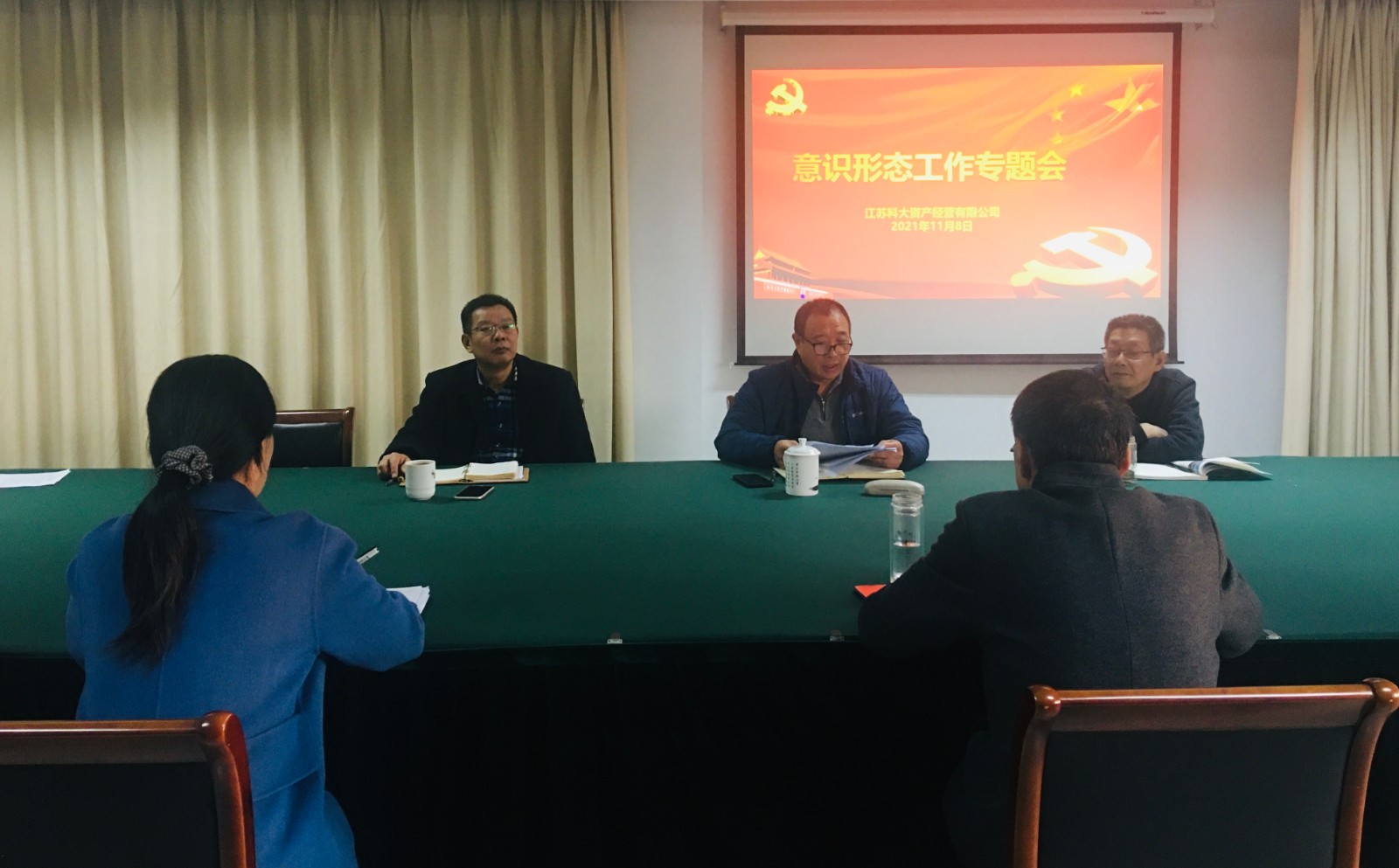 11月8日下午,资产经营公司召开意识形态工作专题会议。会议由党工委书记葛建华主持,党工委委员李国锋、何静、王成兆、张蕙菁等参加。