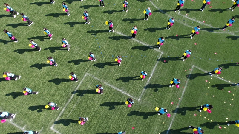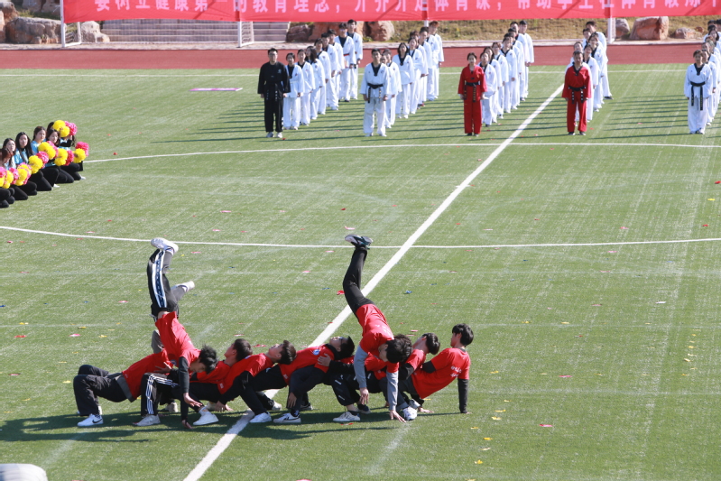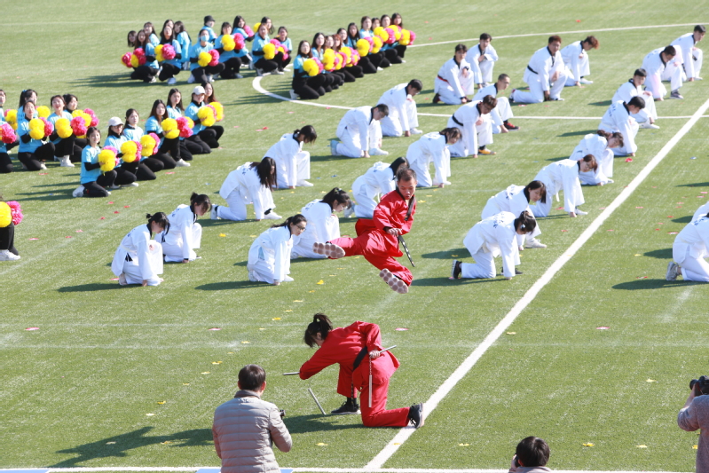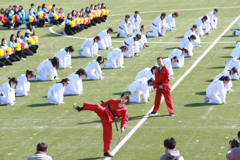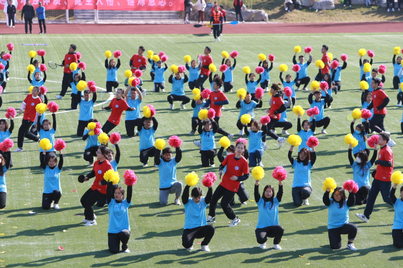 精彩的教学成果展示是今年开幕式的一大亮点。各学院组成的广播操、太极拳表演,以及由邱岚、刘圣圣等体育教师负责编排的教职工广场舞、大型团体操表演项目相继开展。