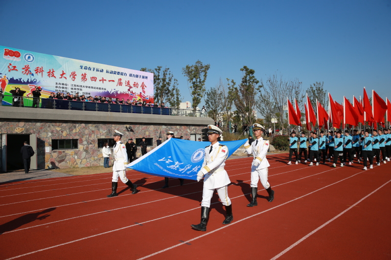 伴随着激昂的运动员进行曲,国旗、校旗方队,18个学院的运动员在各学院学工领导的带领下,身着整齐的服装,迈着铿锵有力的步伐依次入场,彰显了江科大学子积极昂扬、拼搏不息的精神风貌。