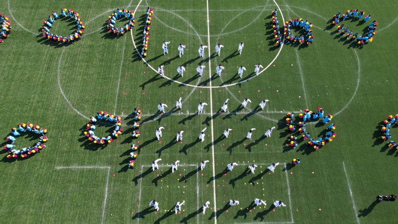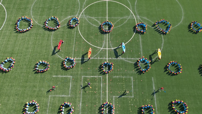 开幕式最后,团体操参演同学摆出船帆造型,托起“笃学明德、经世致用”、“扬帆远航、运动科大”的醒目标语,也预示着新蒲京娱乐场官网3245必将在国内一流造船大学的道路上奋勇向前!