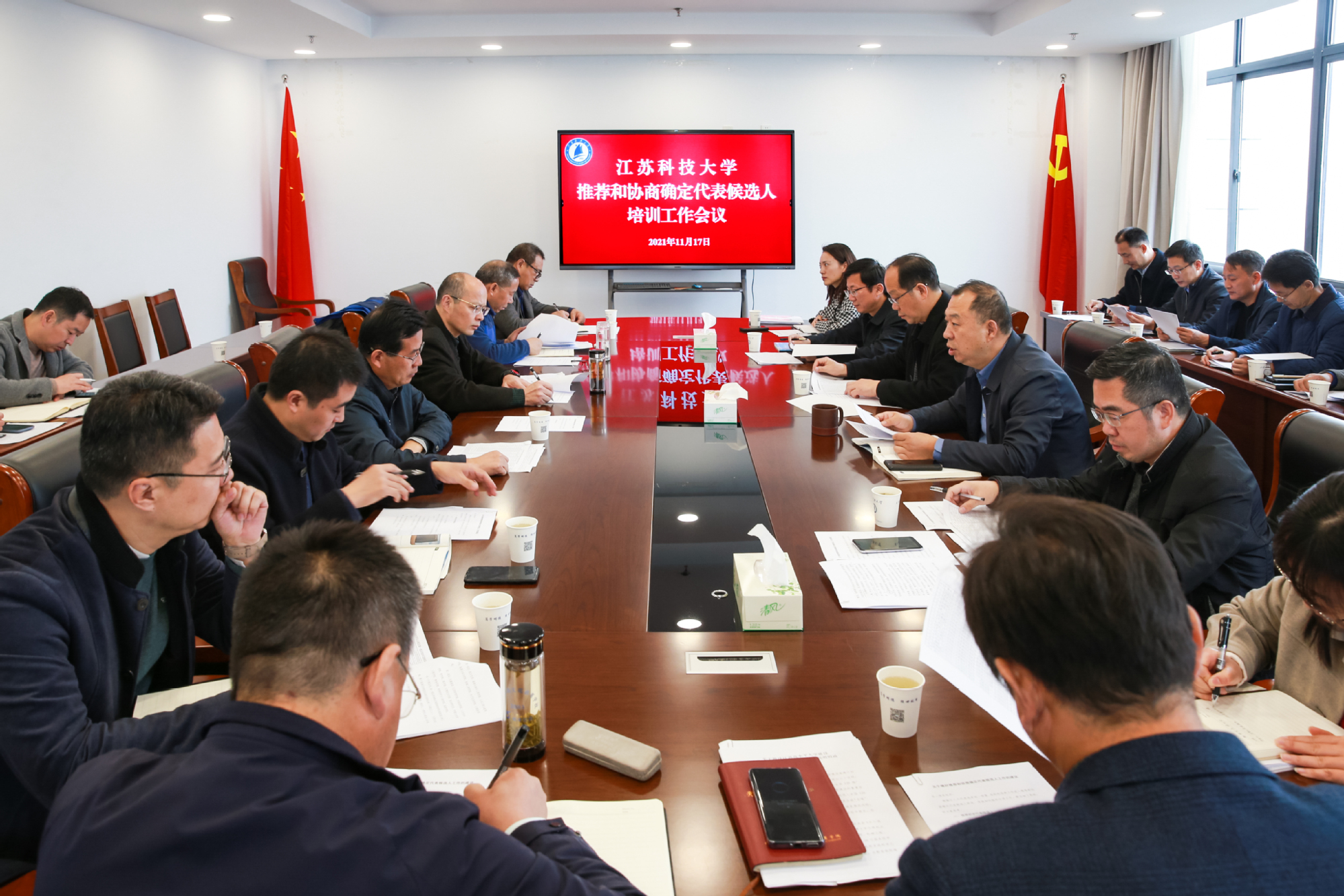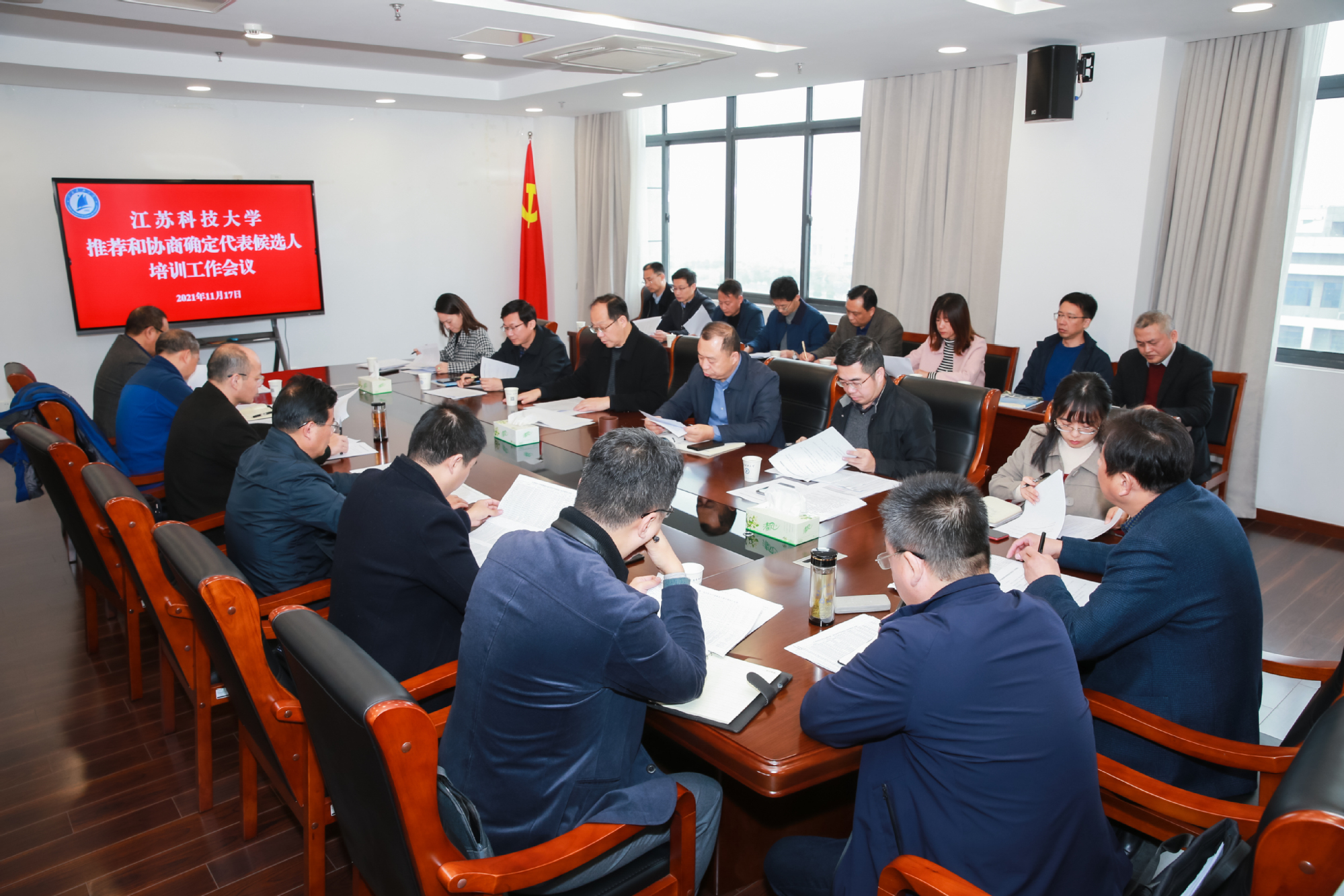 11月17日,新蒲京官网在行政楼八楼会议室召开推荐和协商确定代表候选人培训工作会议,校人大代表选举工作领导小组副组长、党委副书记许俊华,校选举工作办公室主任、党委常委刘新波出席会议,各二级党组织书记、选举工作办公室秘书组、组织组、选举资格审查组等人员参会。刘新波主持会议。