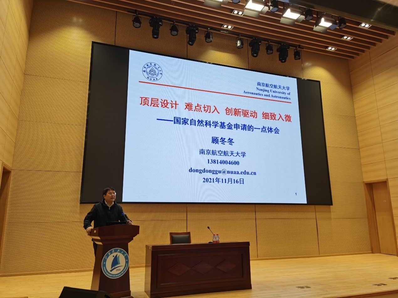 为进一步推动新蒲京官网2022年度国家自然科学基金的申报工作,提升申报项目质量,2021年11月16日下午,科技处邀请南京航空航天大学顾冬冬教授就国家自然科学基金申报作专题辅导报告。科技处处长王志东主持,各学院国家自科基金工作负责人及申报教师200余人聆听了此次报告。