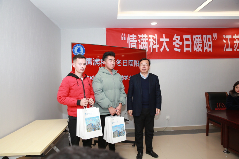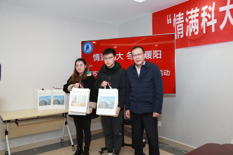 当天下午, “情满科大 冬日暖阳”爱心助学主题活动也热力铺开。校长周南平,副校长汤建,党委常委、宣传部长周春燕分别向40余名学生代表赠送“车票礼包”“冬衣礼包”和“爱心书籍”。蒋春雷处长主持。