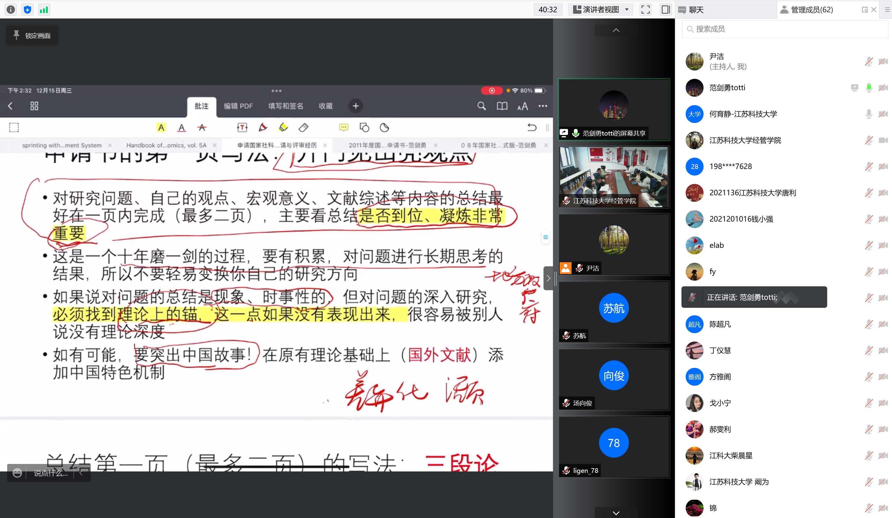 12月15日,复旦大学范剑勇教授应邀为经管、人文社科、马克思主义、外国语、体育学院70余位教师做了题为《申请国家社科基金课题之我见》的在线报告,报告会由经管学院副院长尹洁主持。