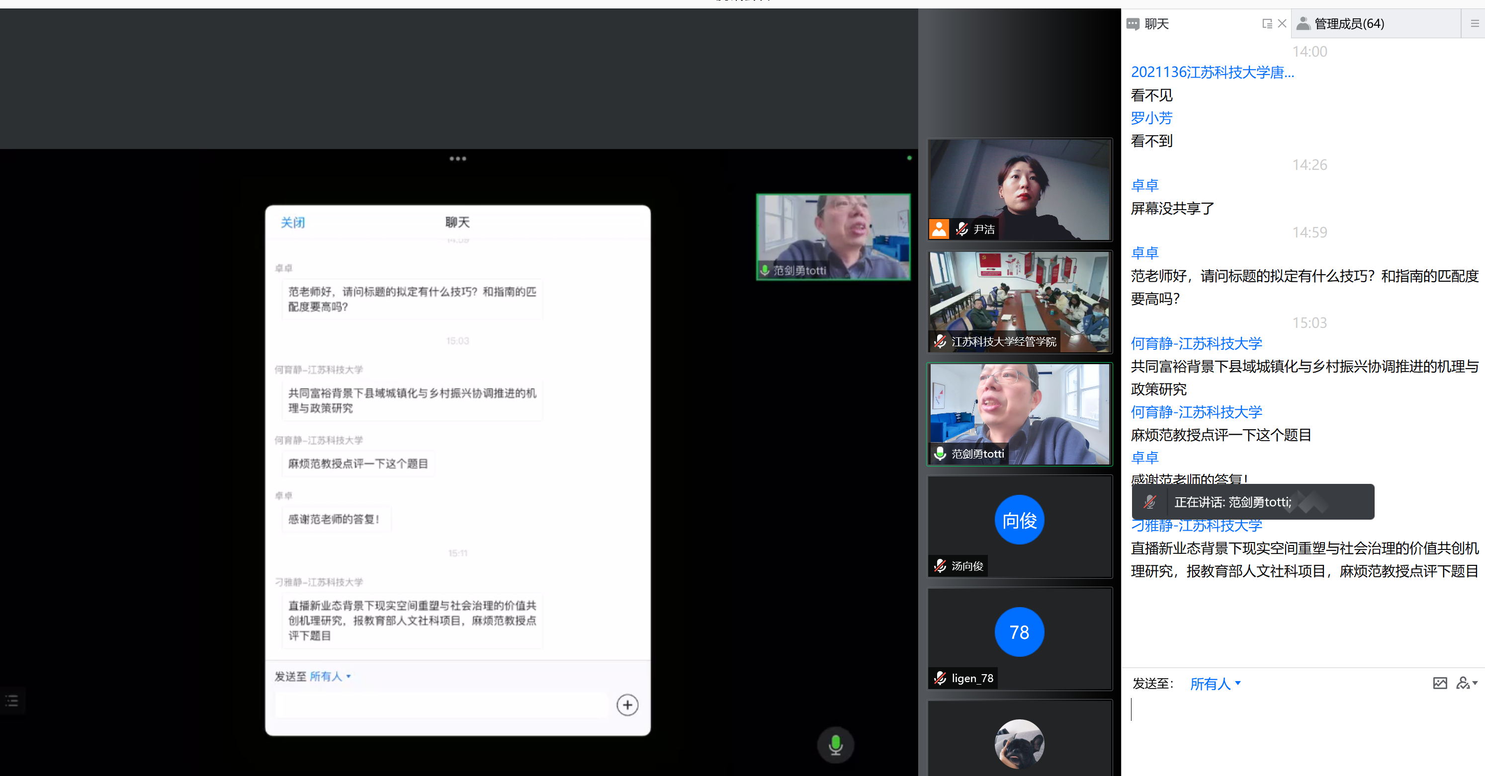报告之后,部分2022年国家社科基金项目的申报教师介绍了拟申报选题,范剑勇教授对选题拟定视角、研究内容布局等方面进行了深度解析,与申报教师进行了深入交流与探讨。