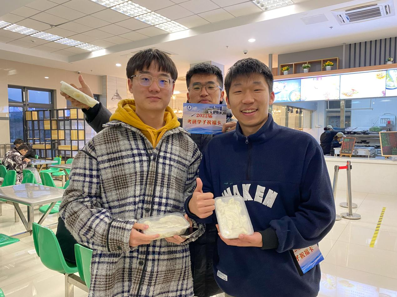 为辛苦备考冲刺的18级考研学子送上“考研胜利饺”,祝福他们收获满满的好运气,祝愿他们考试顺利,进入自己理想的学府继续深造。寒冬相聚,情满心头。