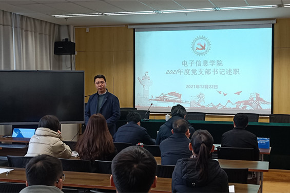 12月22日,电子信息学院在学院学术报告厅召开了2021年度党支部书记述职会议,学院党委领导班子成员、各支部书记、副书记、委员等50余人参加了会议,会议由学院党委副书记何长涛主持。