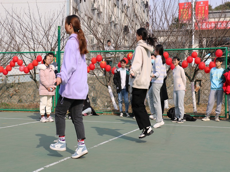 排球场中,“碰碰虎”“跳跳虎”“摇摇虎”三个项目的比赛紧张有趣,以专业大类为单位,进行着踩气球、立定跳远和跳绳的比赛。比赛中,同学们不仅体验着竞赛的趣味性,同时又加强了体育锻炼,更从中感受到了迎新年的热闹。看似简单普通的三项娱乐性比赛,却足以给同学们带去欢笑,让同学们沉浸在丰富多彩的校园文化当中。