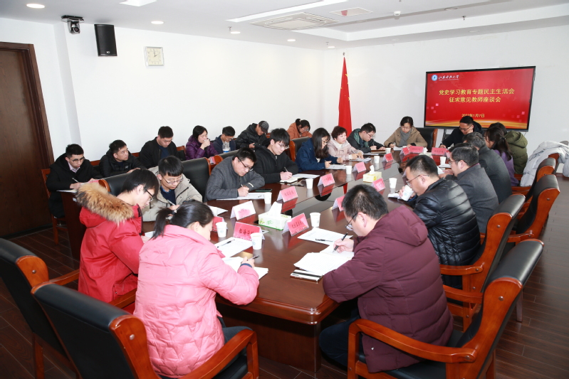 根据上级有关部署,为广泛征求意见建议,做好党史学习教育专题民主生活会会前准备,1月7日下午,学校在行政楼八楼会议室召开党史学习教育专题民主生活会征求意见教师座谈会。校党委副书记、副校长景旭文,党委办公室、组织部、宣传部、校纪检监察机关、人事处、教务处、科技处、人文社科处、研究生院、后勤管理处等部门领导和各学院教师代表参加座谈。会议由党委教师工作部部长、人事处处长朱志宇主持。