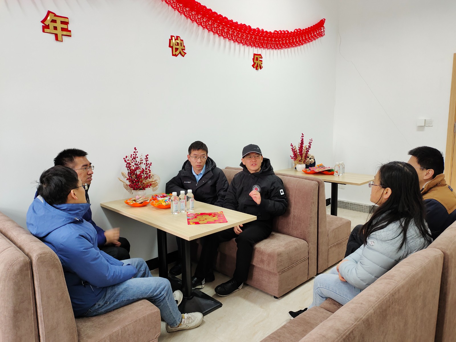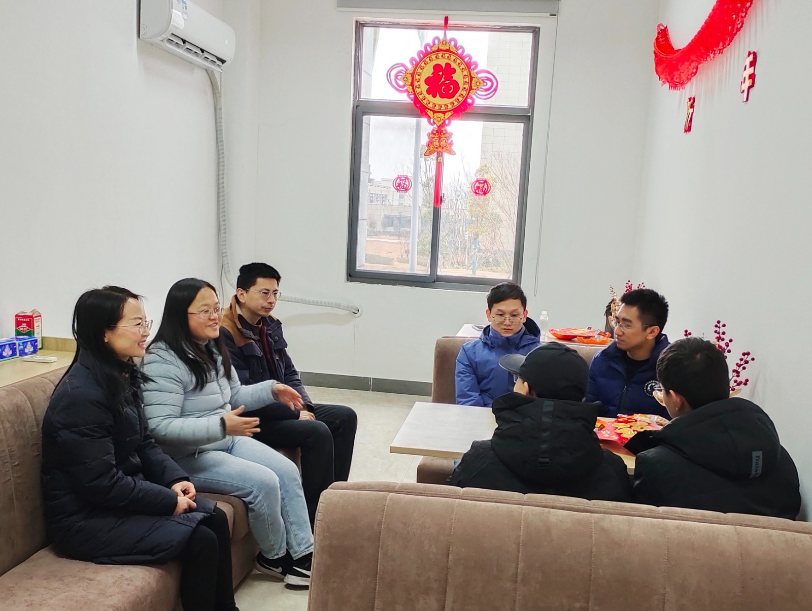 校工会将青教公寓一楼棋牌室精心布置成“新年小屋”,准备了丰富的小零食,方便老师们春节相聚。下午的座谈活动在棋牌室举行,刘剑副主席和几位教师亲切交谈,介绍了校工会服务青年教工的工作情况,听取他们的意见和建议;了解他们的假期生活,得知几位老师每天都在办公室坚持科研,告诉他们注意劳逸结合,增进交流,加强身体锻炼,健康快乐地工作和生活。
