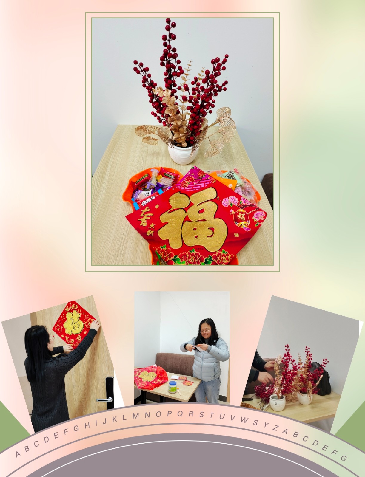 刘剑给几位老师赠送了教工之家定制的春节餐券和新春福包,走访宿舍,送“福”到家。老师们亲手张贴,温馨满满。刘凯老师带大家参观了教职工活动中心,调试好空调和网络并指导使用。春节期间,教职工活动中心可用场地全部开放,老师们可以随时进入乒乓球室、健身室、观影室等。巩芳芳老师建立“开心过年”微信群,保持联系,全程服务。几位老师纷纷表示,教工之家的关爱令他们倍感温暖,比在家里过年还有仪式感,很开心;今后会加倍努力,珍惜和热爱工作,不断成长,为学校的发展贡献力量。