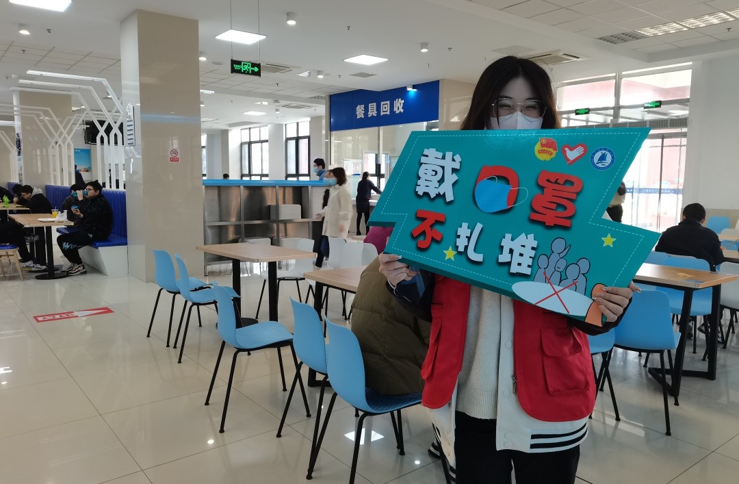 1922107111团支部陈雨说道:“学校防疫的关键时期,大学生应该“聚成一团火”,参与到防疫志愿服务工作中,彰显青年人的担当与使命。针对食堂、图书馆等人流量较大的重点区域,我们积极参与秩序维护等志愿服务工作,为铸牢学校防疫城墙做出青年的努力。”