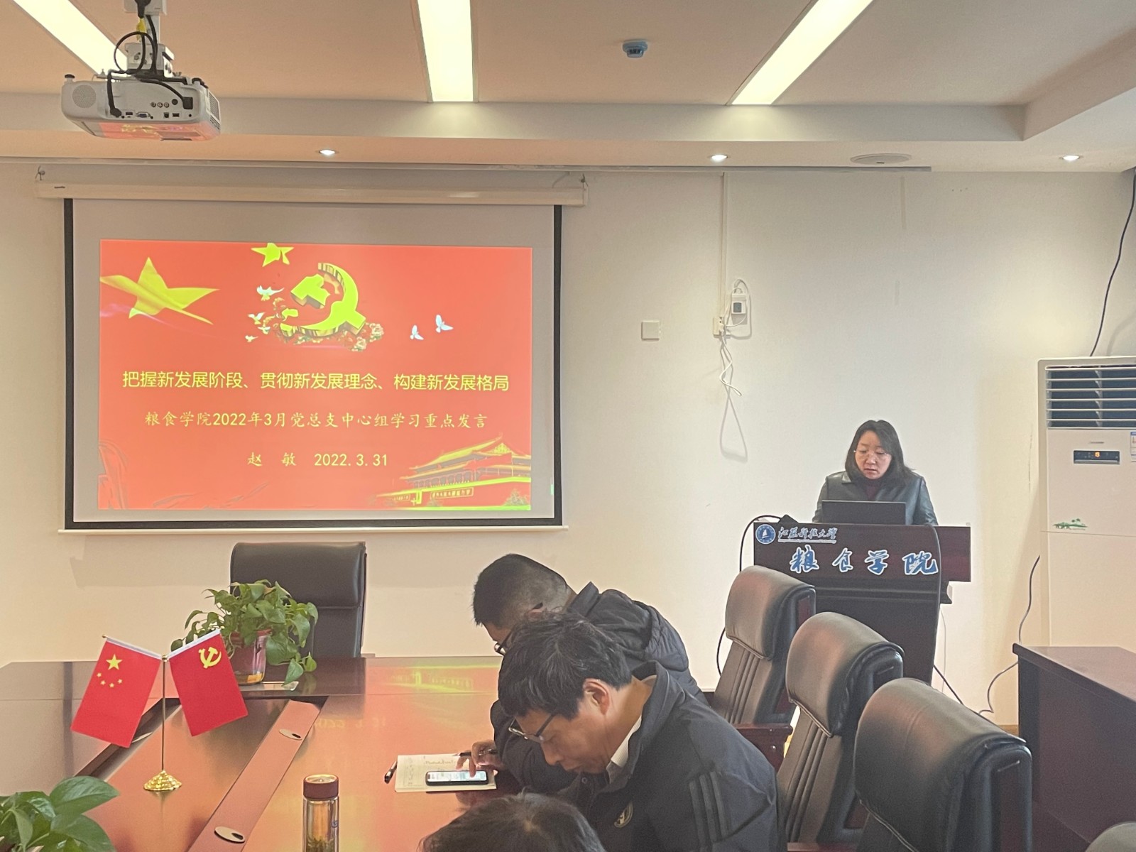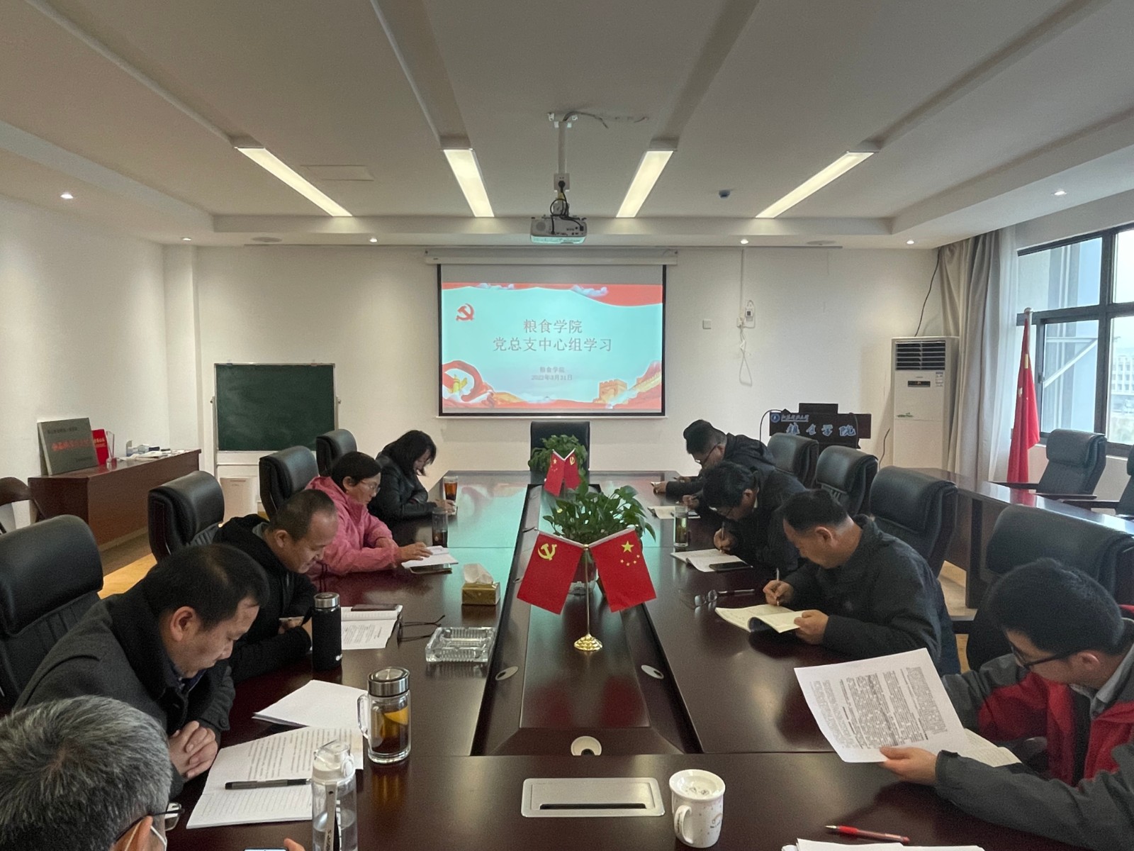 3月31日上午午,粮食学院党总支在学院436会议室开展本学期第一次中心组集中学习,全体中心组成员参加会议。此次学习的主题为:学习贯彻全国两会精神、《论把握新发展阶段、贯彻新发展理念、构建新发展格局》、教育部2022年工作要点、江苏省教育工作会议精神,紧抓发展机遇,全方位推动学校高质量发展。会议由党总支副书记赵敏主持。