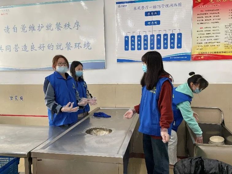 材料科学与工程学院腾飞服务社开展“志愿服务进后勤,雷锋精神伴我行”志愿服务活动,志愿者们帮助宿管老师对工具架、桌柜等设施进行清洁,同时帮助维护食堂秩序,减轻后勤老师工作压力的同时也为同学们营造良好的生活居住环境。