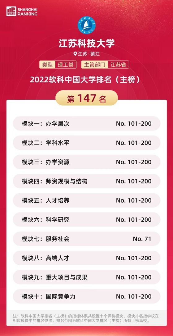 4月19日,高等教育专业评价机构软科今日正式发布“2022软科中国大学排名”。新蒲京娱乐场官网3245位列中国高校第147位,在江苏高校中排名第18位。
