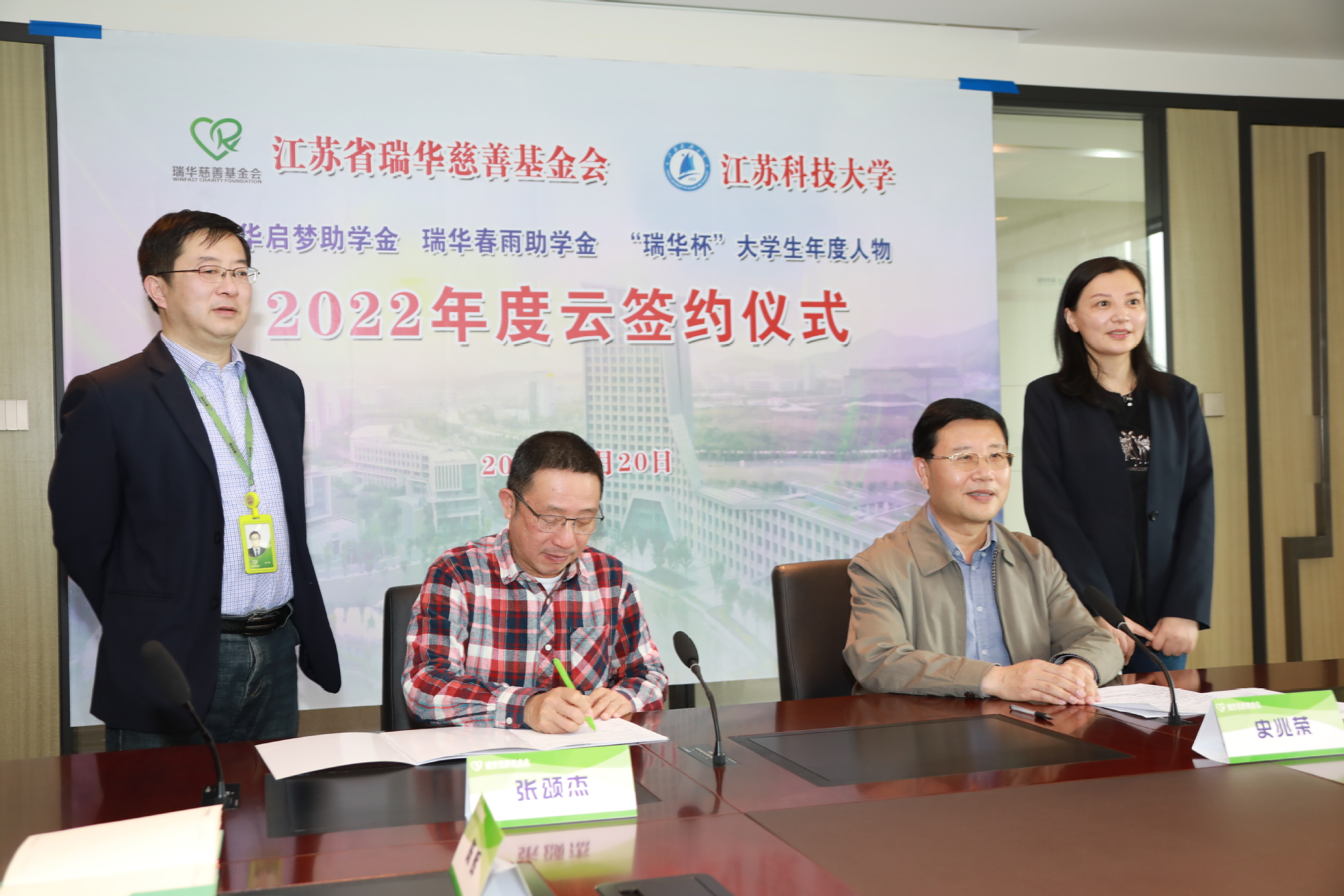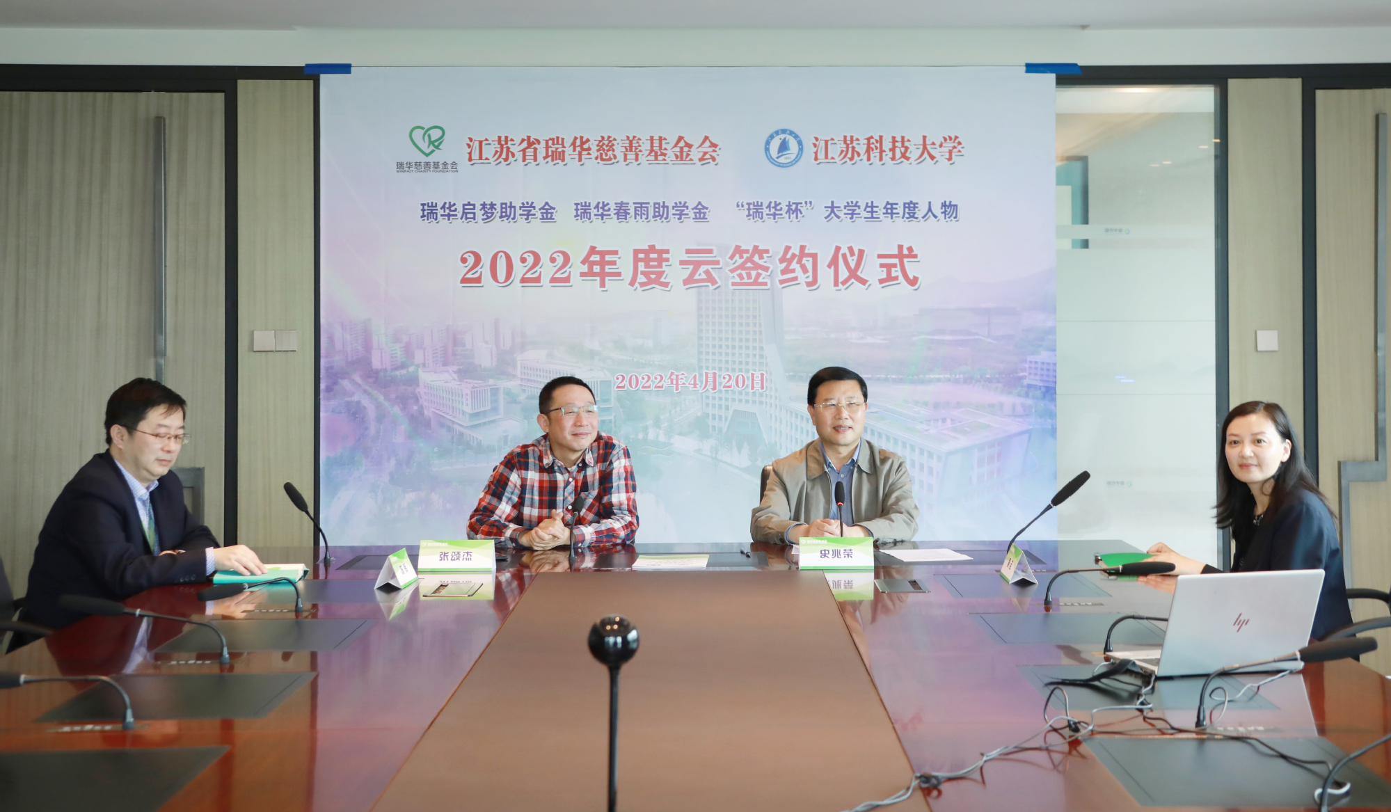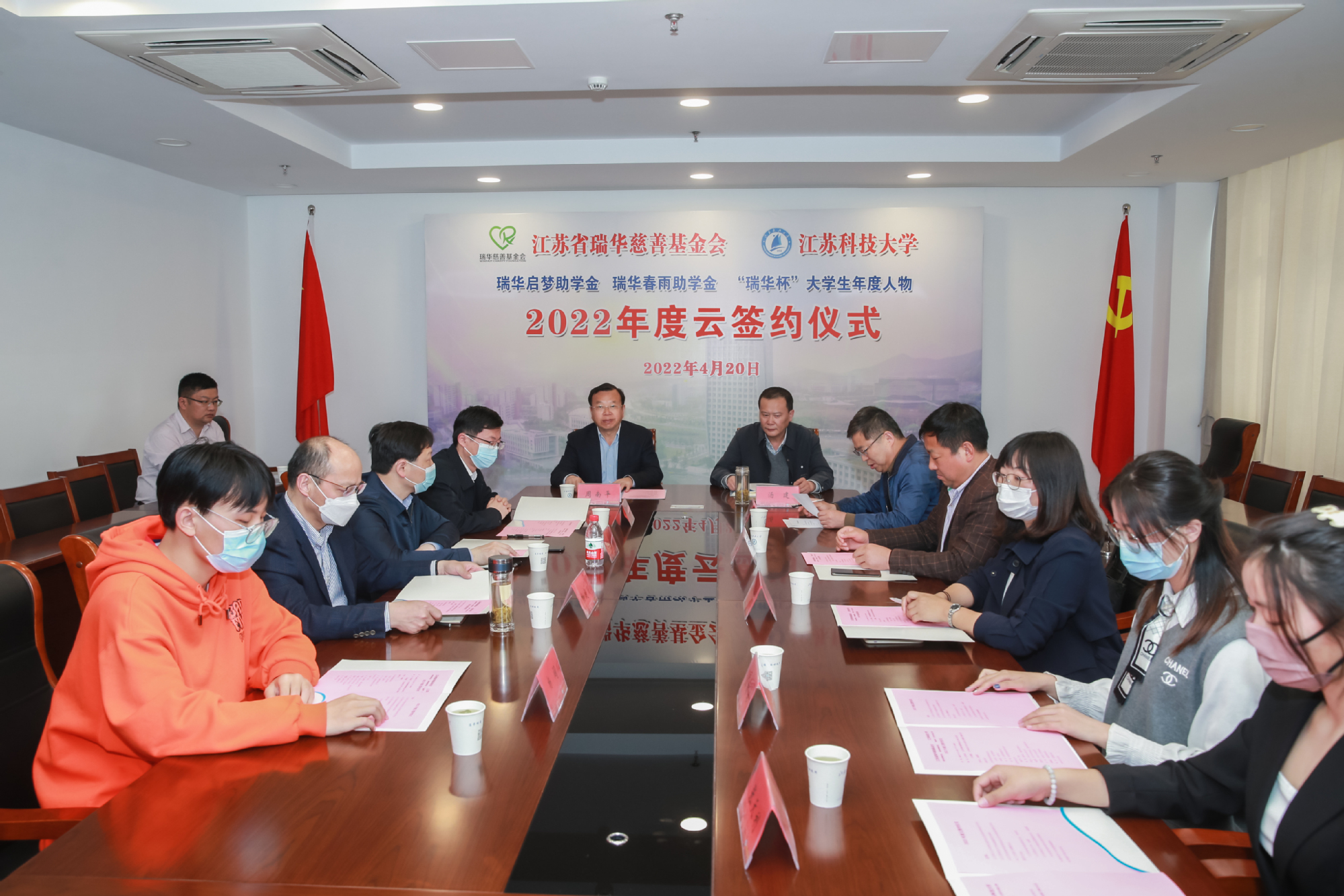 4月20日下午,江苏省瑞华慈善基金会与学校2022年度项目“云签约”仪式在长山校区举行,本次签约三个项目,即瑞华启梦助学金、瑞华春雨助学金和“瑞华杯”大学生年度人物,捐赠共计110万元。江苏省瑞华慈善基金会执行理事长史兆荣、秘书长张颂杰,校长周南平,教育发展基金会理事长、副校长汤建等领导出席签约仪式,仪式由学校教育发展基金会秘书长佘建国主持。
