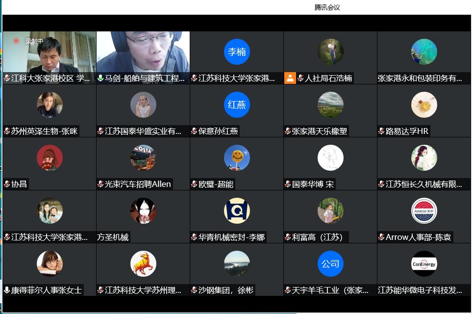 启动仪式结束后,访企拓岗促就业人才供需对接线上交流会正式开始,沙钢集团、永钢集团、长城宝马-光速汽车、中环海陆、永嘉码头、国泰集团、长顺集团等100余家单位代表在线参会交流。杨福章出席会议,学生处、船建学院、机电学院、电信学院、商学院、公共教育学院等学院负责同志参加会议。