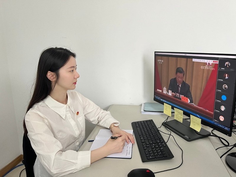 人文社科学院学生李媛媛说,作为新时代共青团员的我们,应当树立远大理想,坚定崇高信念,担当时代责任,练就过硬本领,让青春绽放绚丽之花!