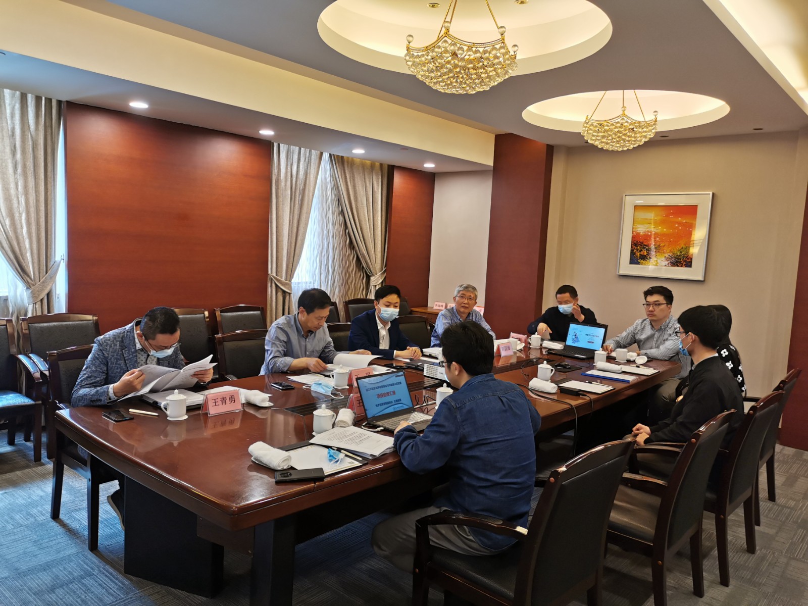 验收会由镇江市科技局法规处处长王强主持,王强处长简要介绍了镇江市政策引导类计划-高校重点实验室项目的背景和政策,王彪教授详细汇报了“镇江市智慧海洋信息感知与传输重点实验室”的任务达成情况、平台建设情况、特色研究方向、科研成果及未来规划。与会验收专家组听取了实验室建设情况汇报,审阅了有关验收材料,进行了现场质询答辩等验收环节。与会专家充分肯定了新蒲京官网重点实验室建设情况,也对实验室的未来发展提出了相关建议。经过专家组讨论,一致认为“镇江市智慧海洋信息感知与传输重点实验室”圆满完成了合同中规定的建设内容,达到了各项建设指标要求,部分研究成果处于国内领先水平,同意通过验收。