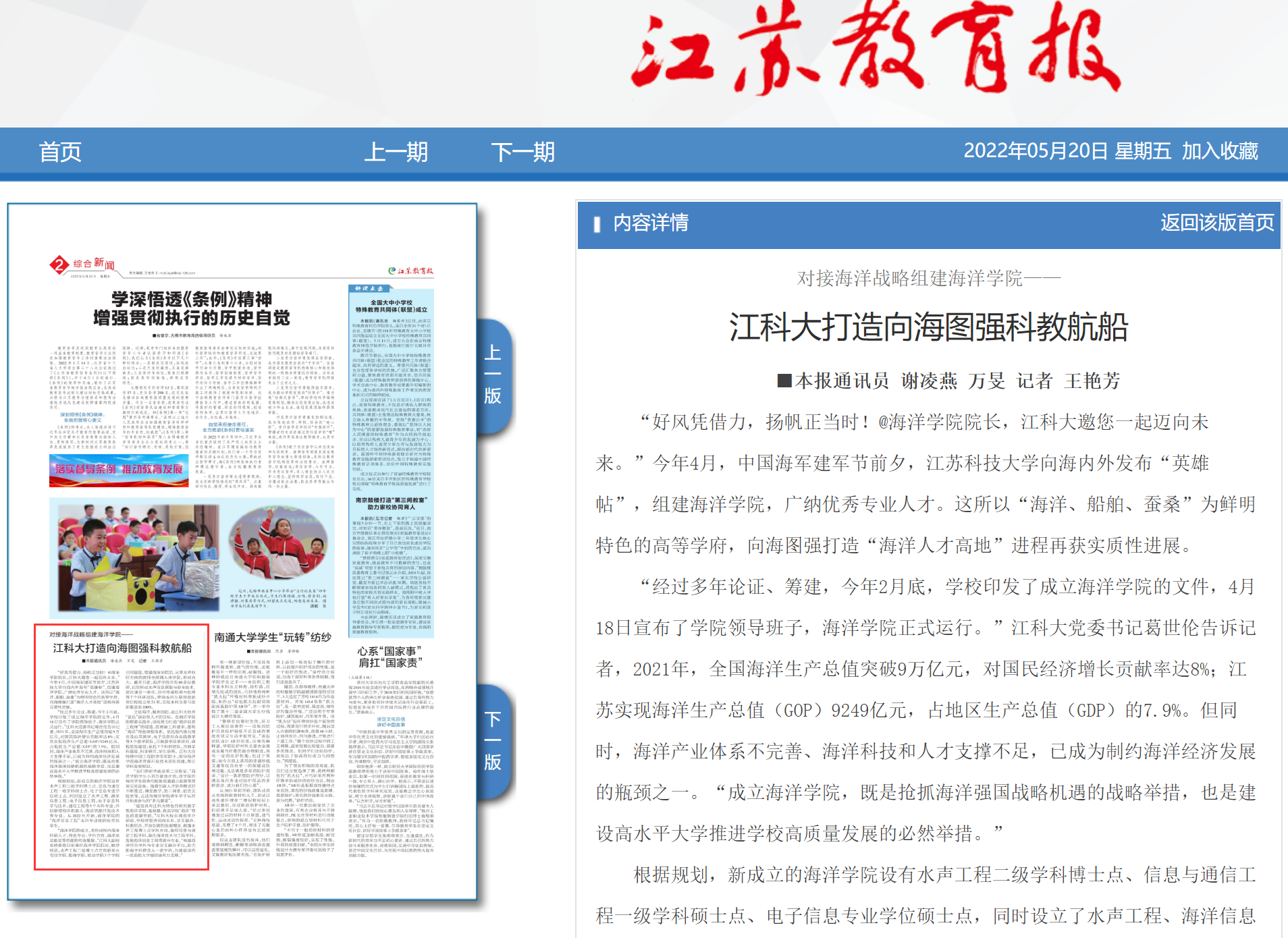 江苏教育报 2022年05月20日 2版 http://epaper.jsenews.com/Article/index/aid/6777575.html