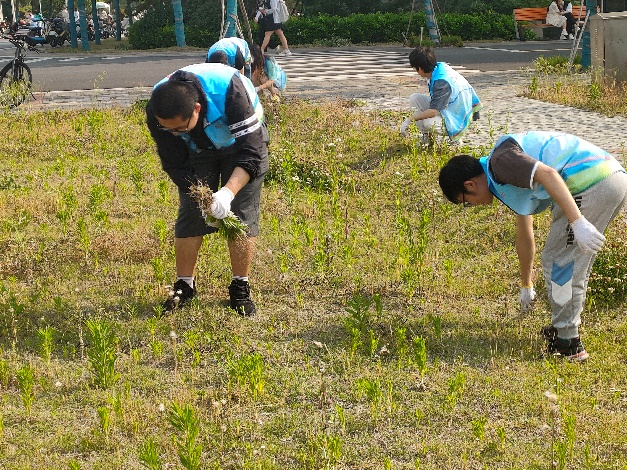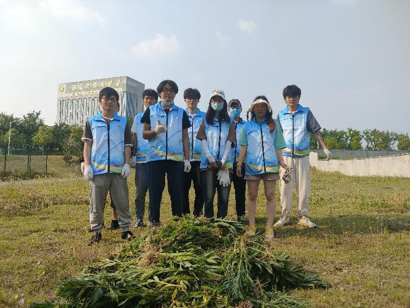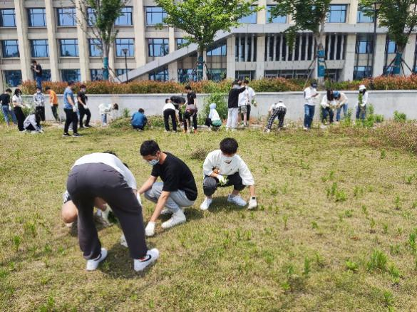 五月下旬的气温在30度左右,户外烈日灼灼,各学院师生不惧高温,在汗水中对抗“加拿大一枝黄花”的蔓延。海洋学院积极响应学校清除“加拿大一枝黄花”倡议,招募学生党员、团员志愿者队伍,开展“一枝黄花随手拔”行动。志愿者们在校园内草坪、路边将一枝枝“加拿大一枝黄花”连根拔起,尽己之力阻断其泛滥之势;计算机学院112团支部32人在学校西网球场南侧小山坡和“加拿大一枝黄花”进行了一次正面交锋。此外,还有同学借助线上平台,制作了宣传“连根拔起,清剿黄花”的宣传海报,以新颖的方式动员同学们行动起来;理学院100余名教师和学生党员、入党积极分子在后勤管理处工作人员的指导下,采取分片包干的方式,分工协作开展了近2个小时的劳动。由于 “一枝黄花”根系发达,要连根拔起不仅需要力气还需要技巧,不到半个小时,大家已经汗流浃背、口干舌燥、手臂瘙痒……