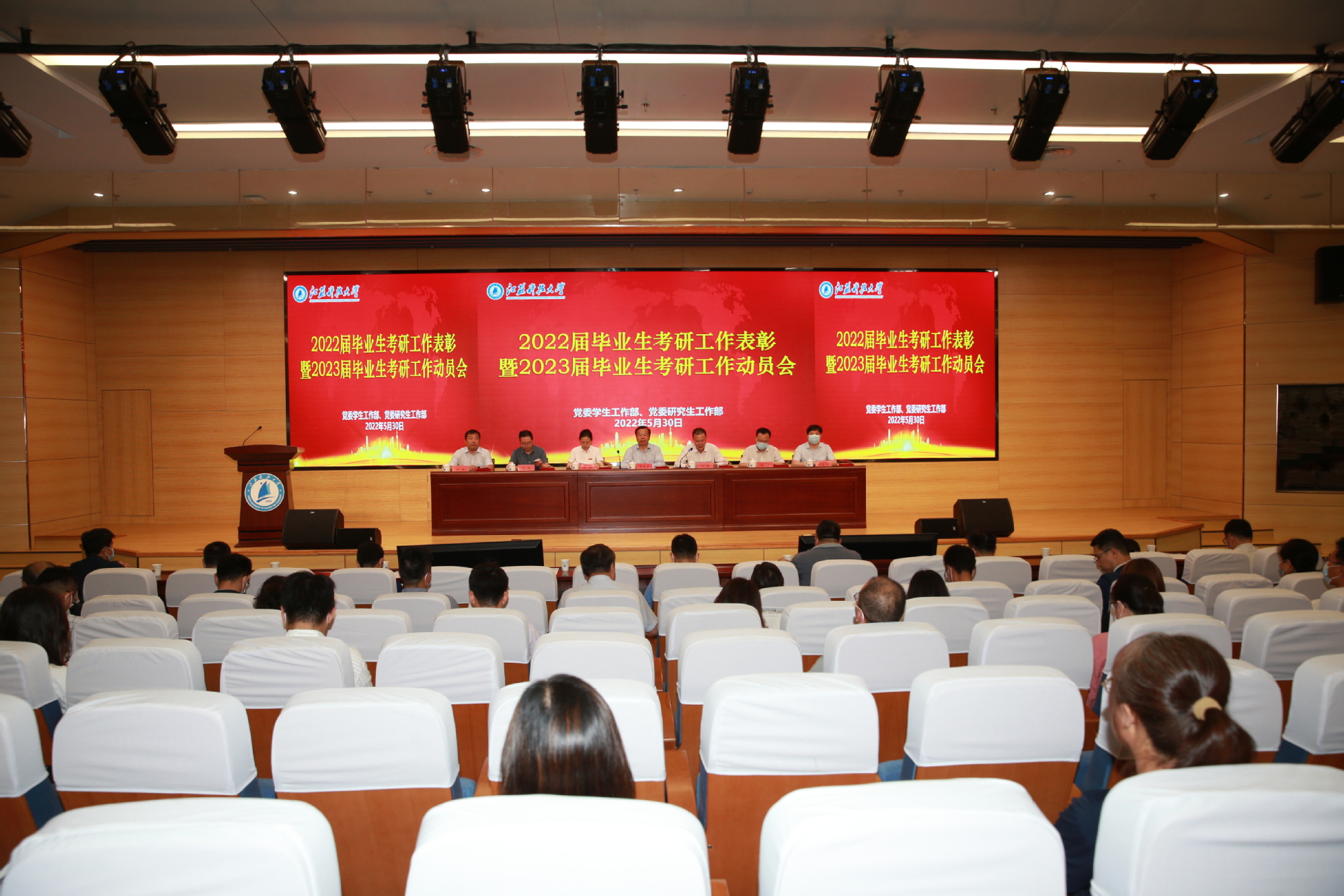 5月30日下午,新蒲京官网在长山校区图书馆B105举行2022届毕业生考研考博工作表彰暨2023届毕业生考研考博工作动员会,校长周南平,校党委常委、副校长汤建、任南,学生处、研工部、研究生院、教务处等职能部门领导,各学院院长及分管学生工作领导,全体辅导员,2022届考研考博优秀学生代表、优秀指导教师代表、先进集体代表,2023届考研考博学生代表参会。会议由汤建主持。