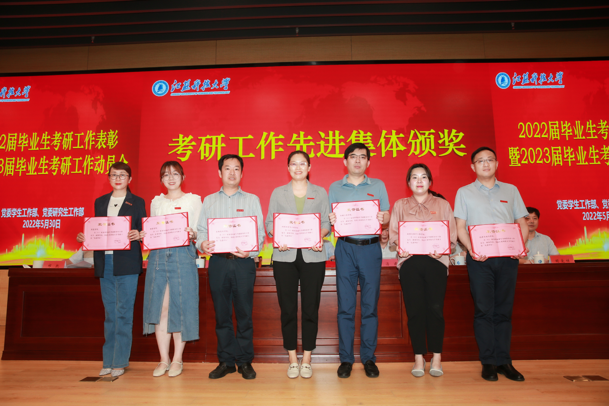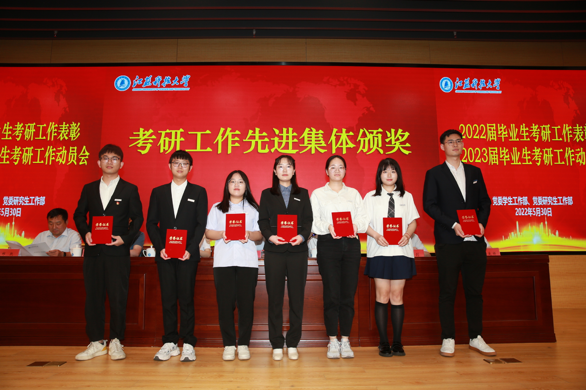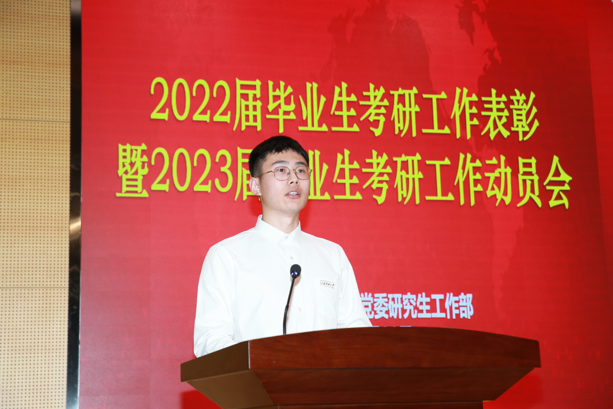 任南宣读了《关于表彰新蒲京娱乐场官网32452022届硕士研究生“考博优秀学生”的决定》《关于表彰新蒲京娱乐场官网32452022届本科毕业生考研优秀学生、优秀指导教师、先进集体的决定》,共有24名硕士研究生、1179名本科生、36名教师及37个先进集体(7个学院、10个班级、20个宿舍)受到表彰。