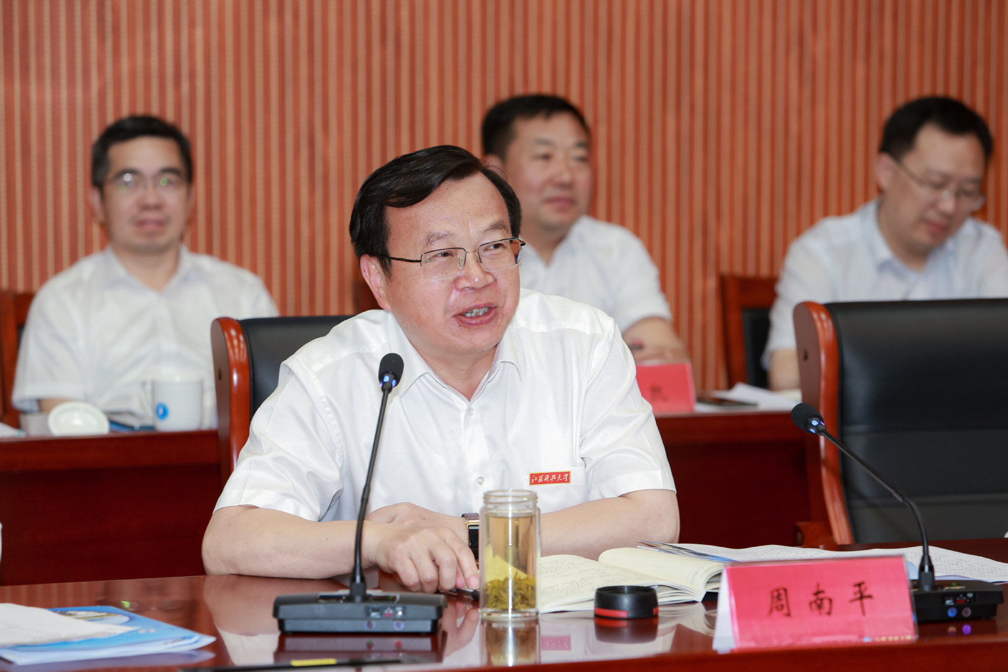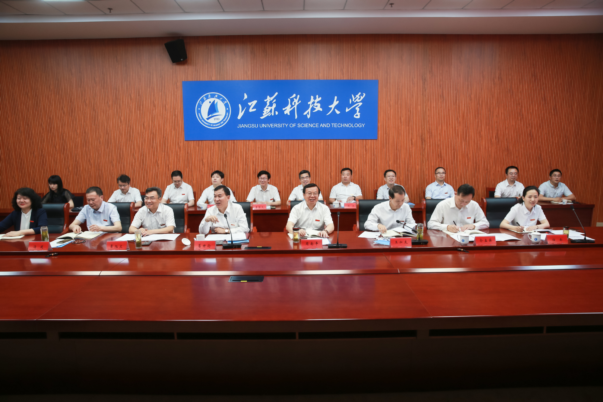 校党委书记葛世伦介绍了学校推进落实中国船舶集团与江苏省人民政府共建协议情况。他表示,学校与中国船舶集团血脉相连,在中国船舶集团和省政府的热切关心与大力支持下,学校综合实力不断增强,成为江苏高水平大学建设高峰计划建设高校,下一步学校将大力推进与集团共建船海装备智能制造技术创新中心,开展智能制造相关技术研究;共建船海装备智能制造产业学院,开展船海装备智能制造卓越人才培养;联合培养研究生;加强双方人员的交流、挂职。葛世伦指出,“铸海器,育船魂”是江科大人的初心,培养船海人才是江科大的使命,实现海洋强国、造船强国是集团和学校共同的责任,学校将进一步发挥特色优势,全力推进落实共建协议,为推动中国船舶集团高质量发展贡献江科大的智慧和力量。