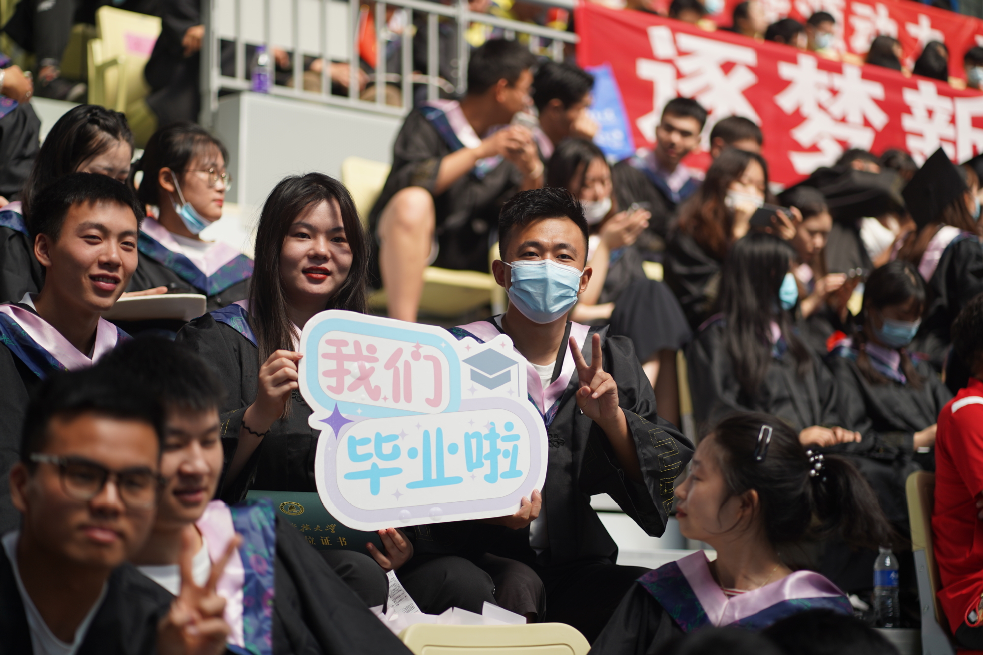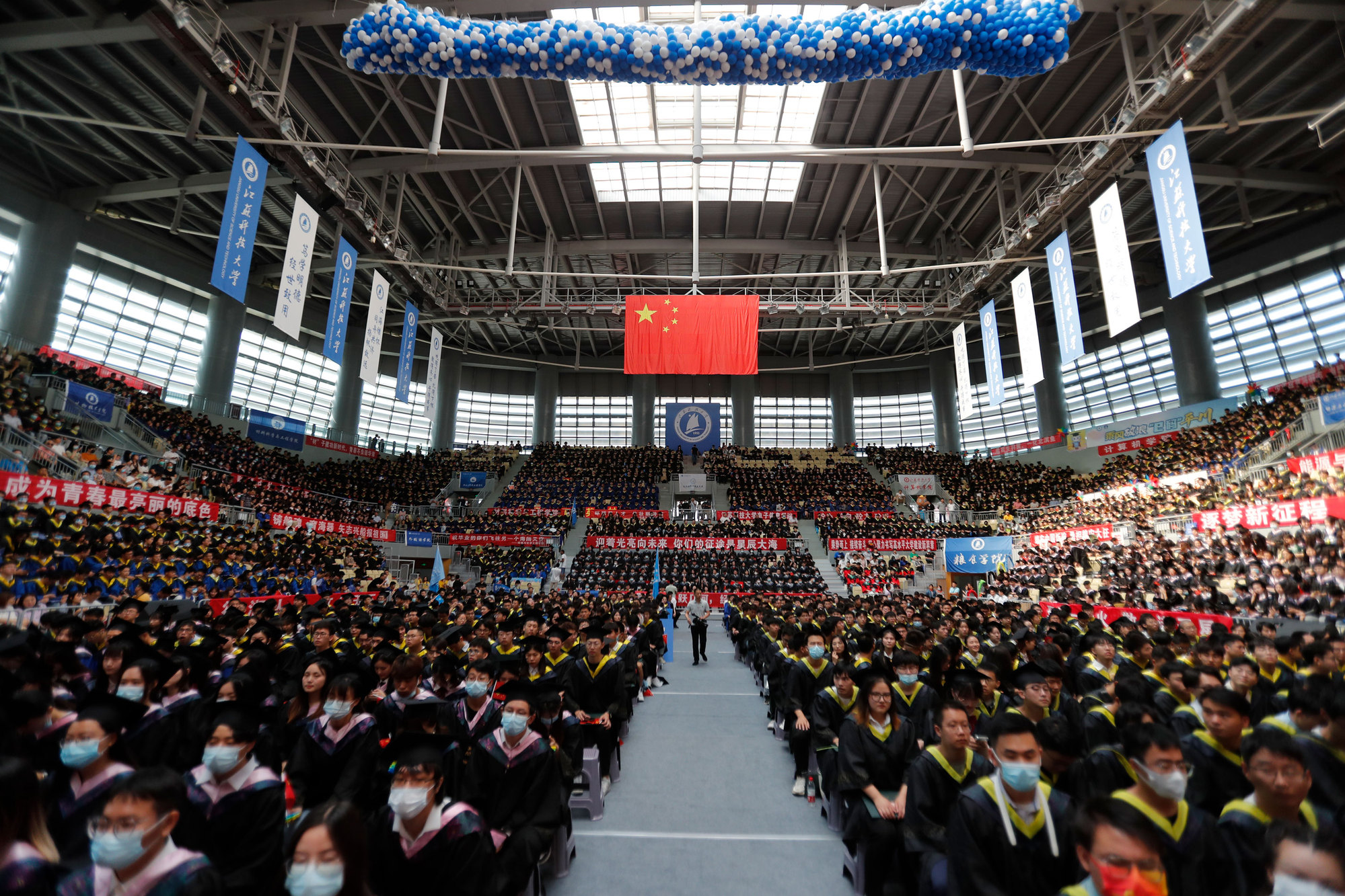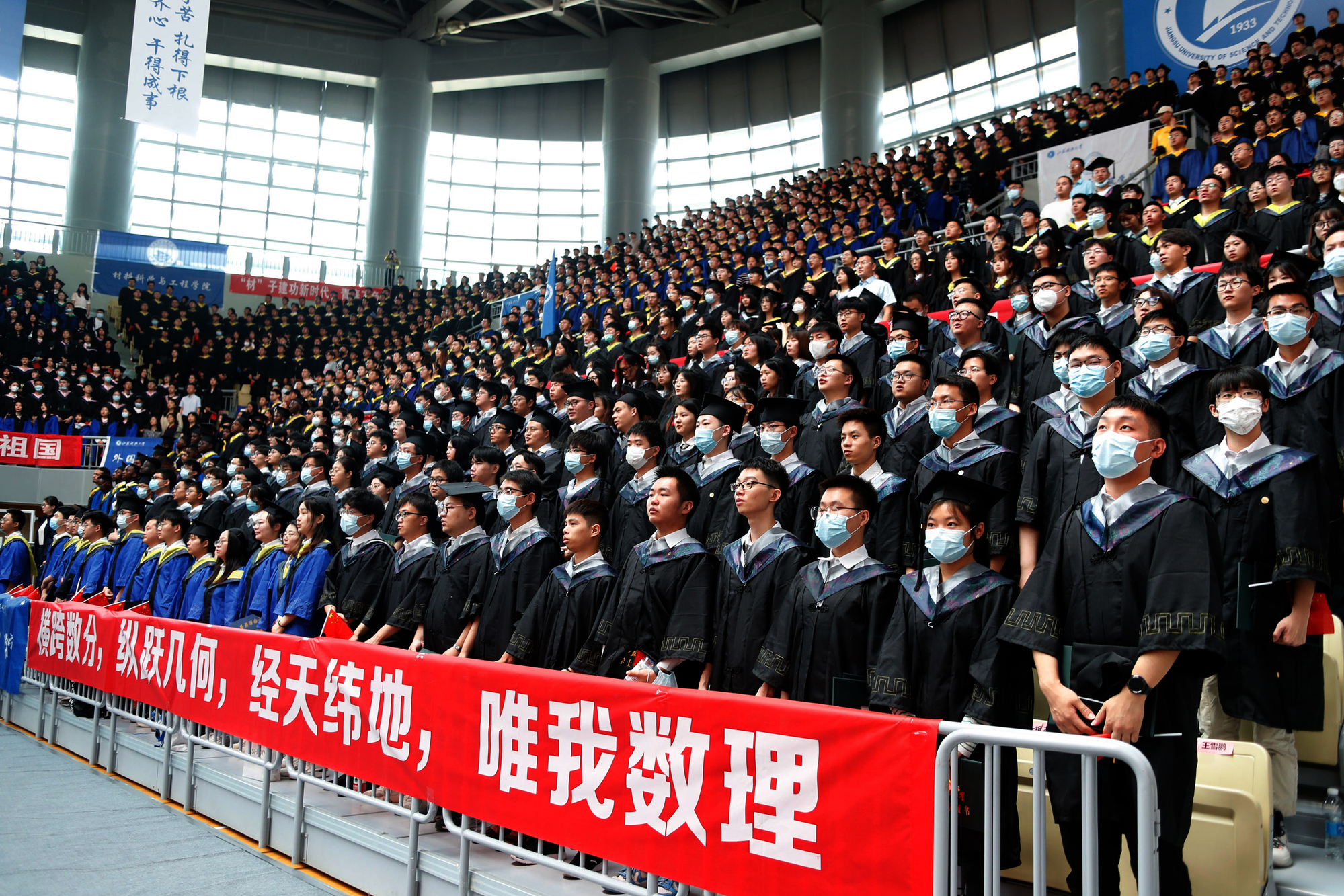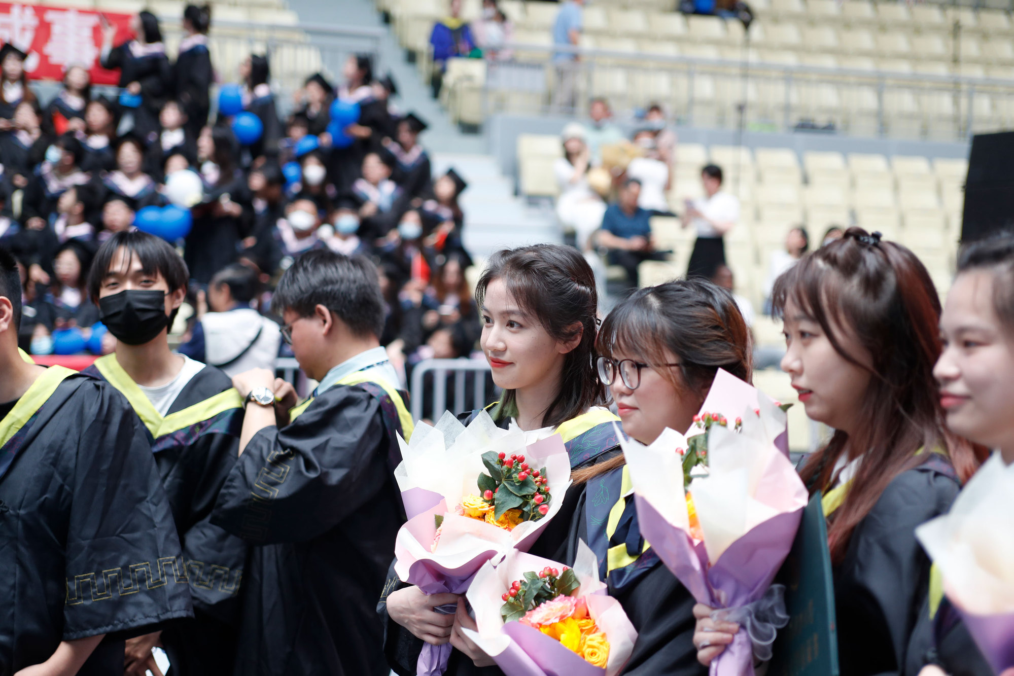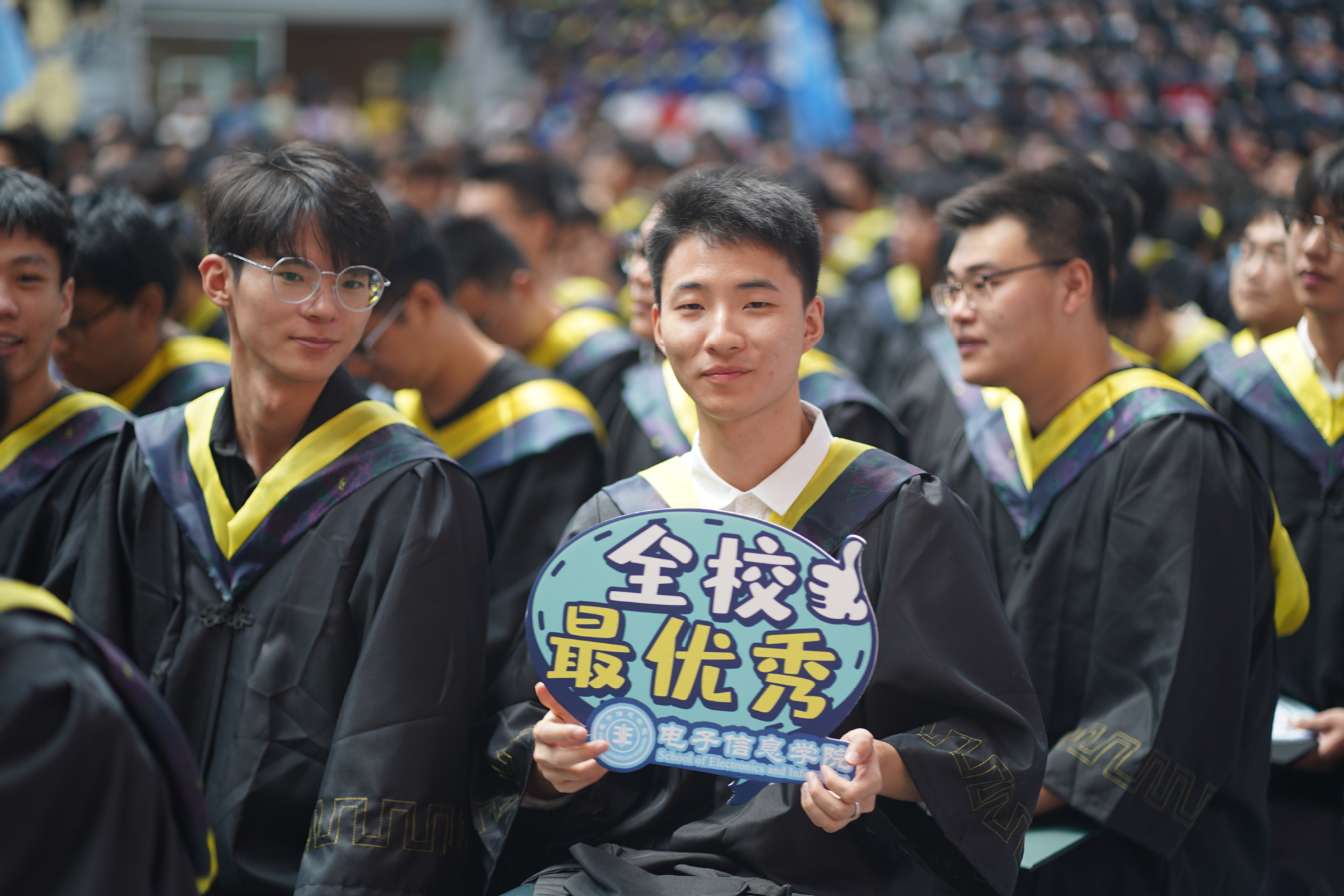 在新蒲京娱乐场官网3245校歌声中,数千只蓝白相间的彩色气球从高空缓缓散落,仿佛跃腾的海浪,将现场氛围感拉满。伴着一路欢歌,庄重的学位授予仪式开始,毕业生依次上台领取学位证书,学位委员会全体导师为他们一一拨穗,圆满完成学位授予仪式。