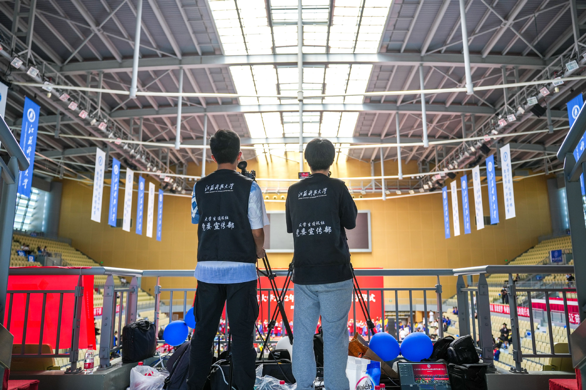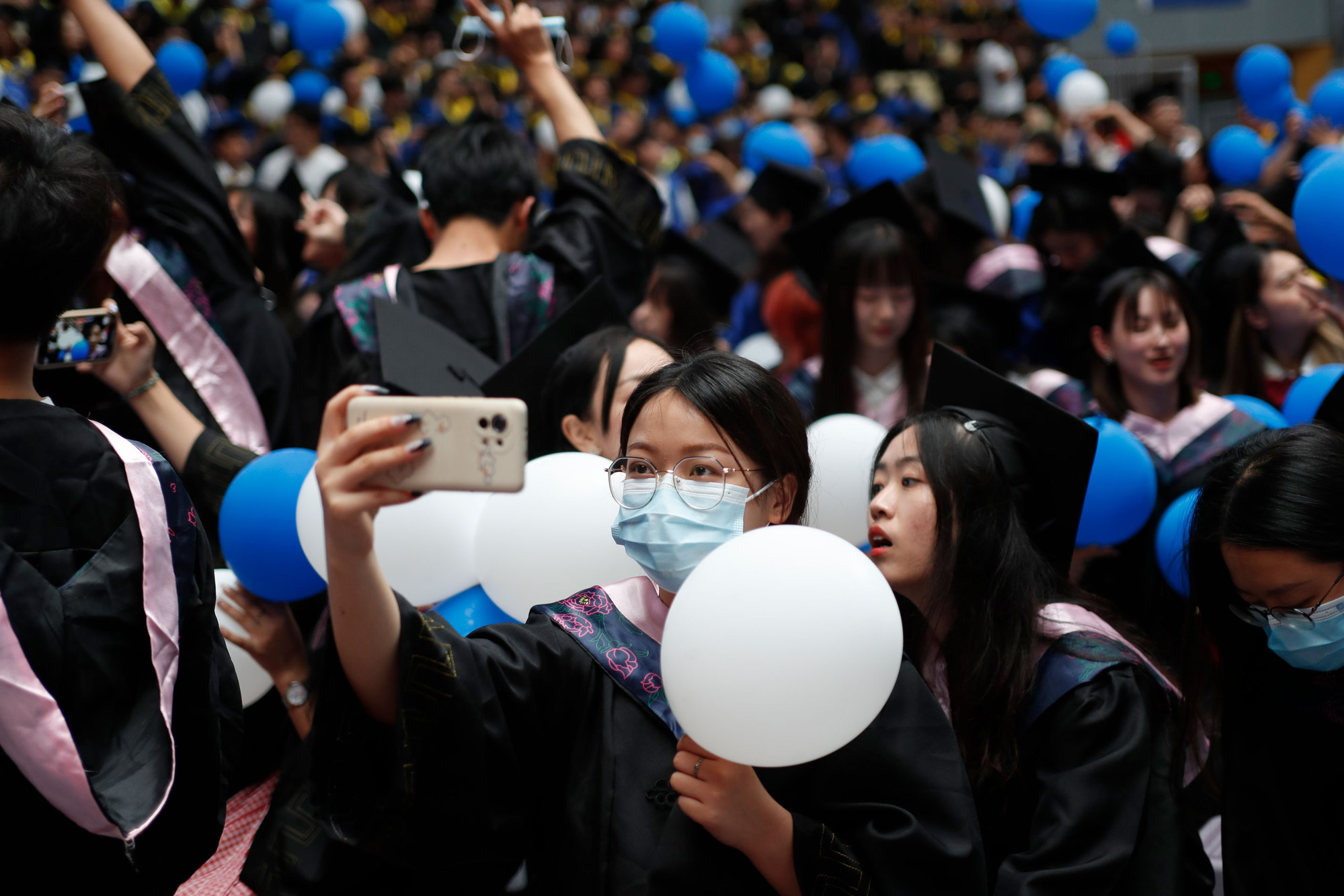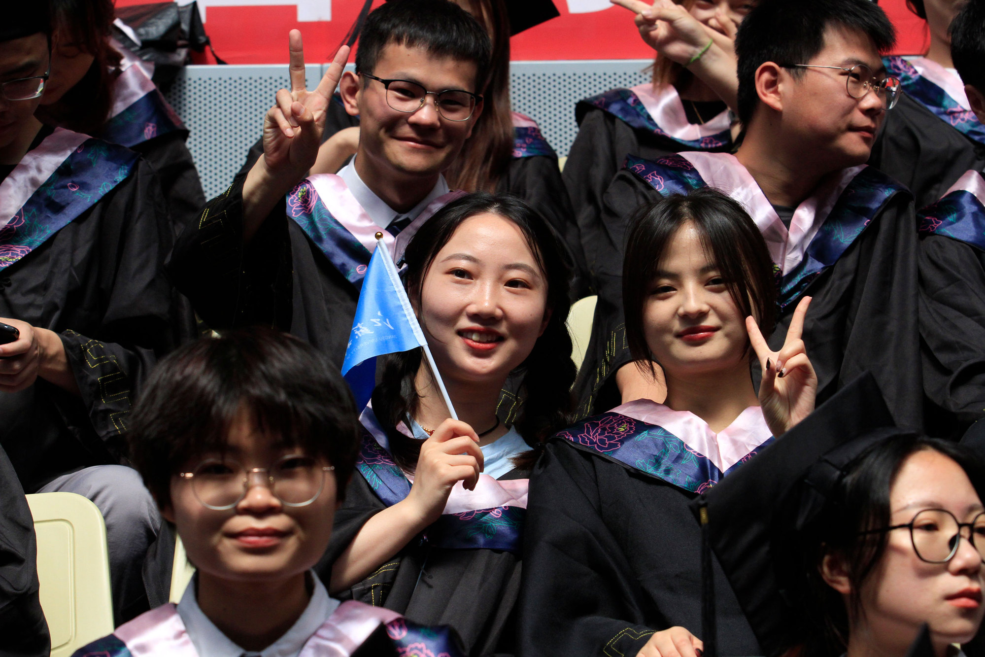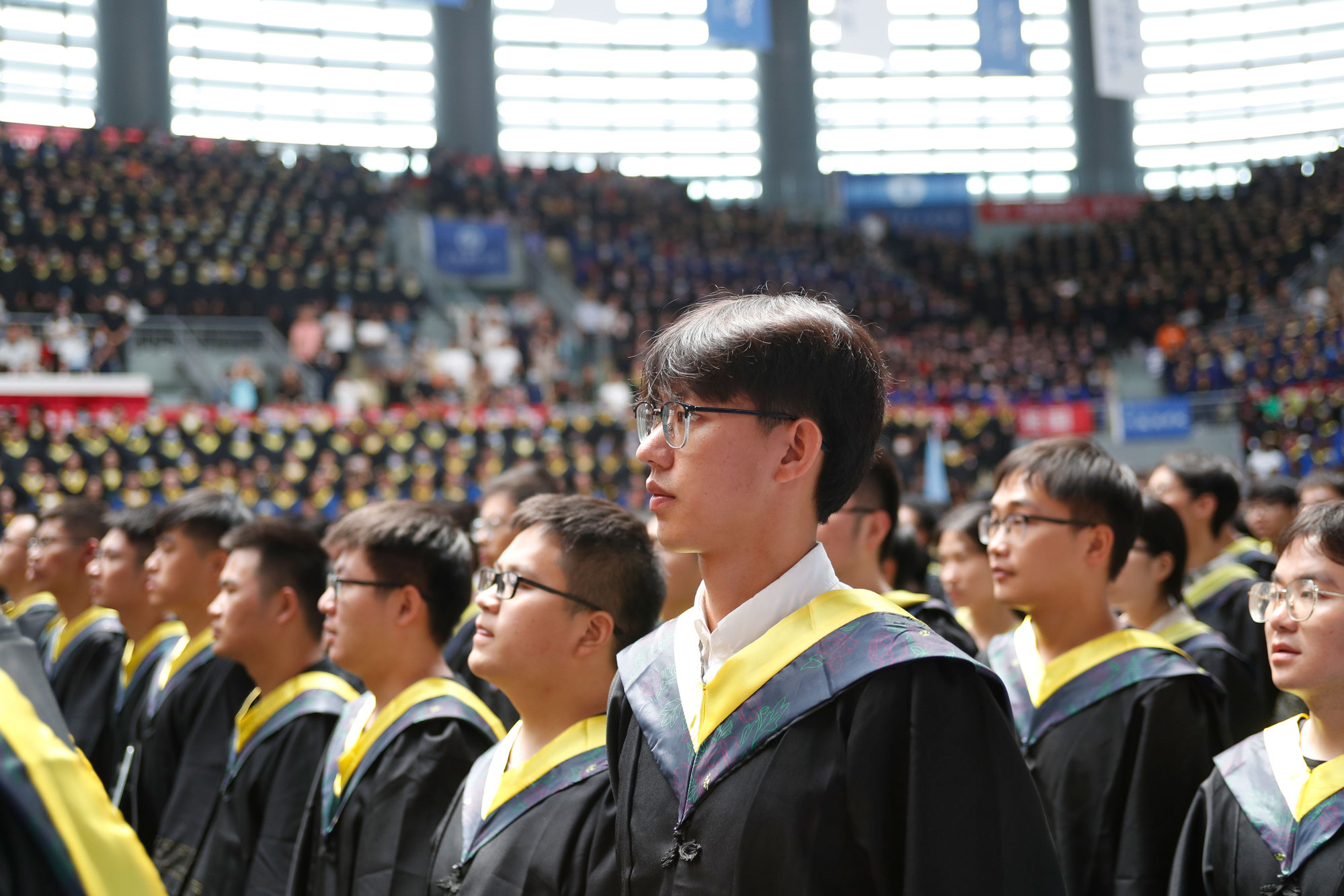 在新蒲京娱乐场官网3245校歌声中,数千只蓝白相间的彩色气球从高空缓缓散落,仿佛跃腾的海浪,将现场氛围感拉满。伴着一路欢歌,庄重的学位授予仪式开始,毕业生依次上台领取学位证书,学位委员会全体导师为他们一一拨穗,圆满完成学位授予仪式。