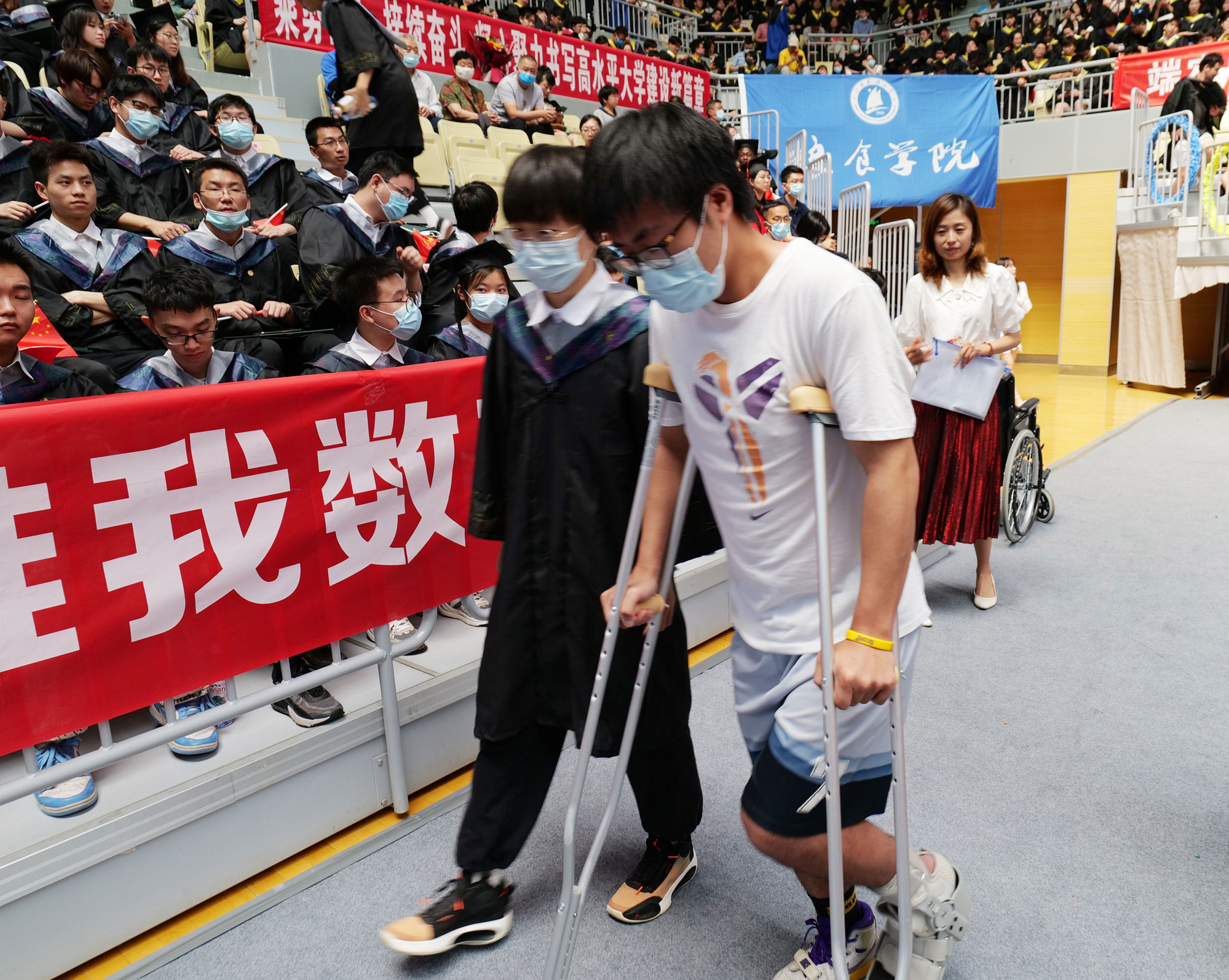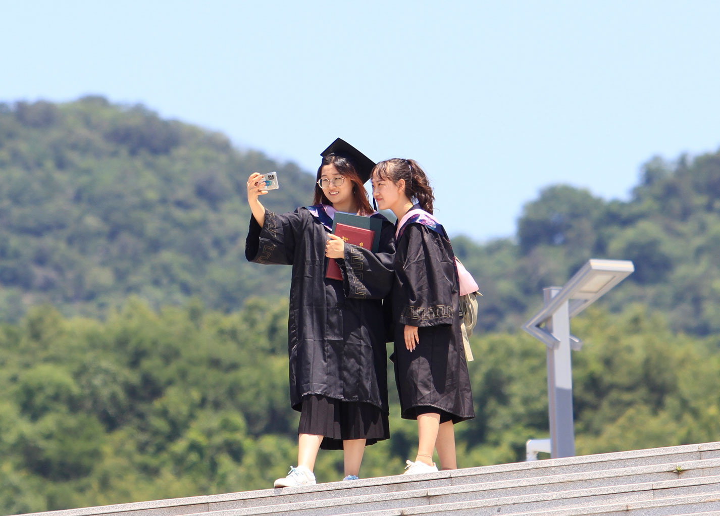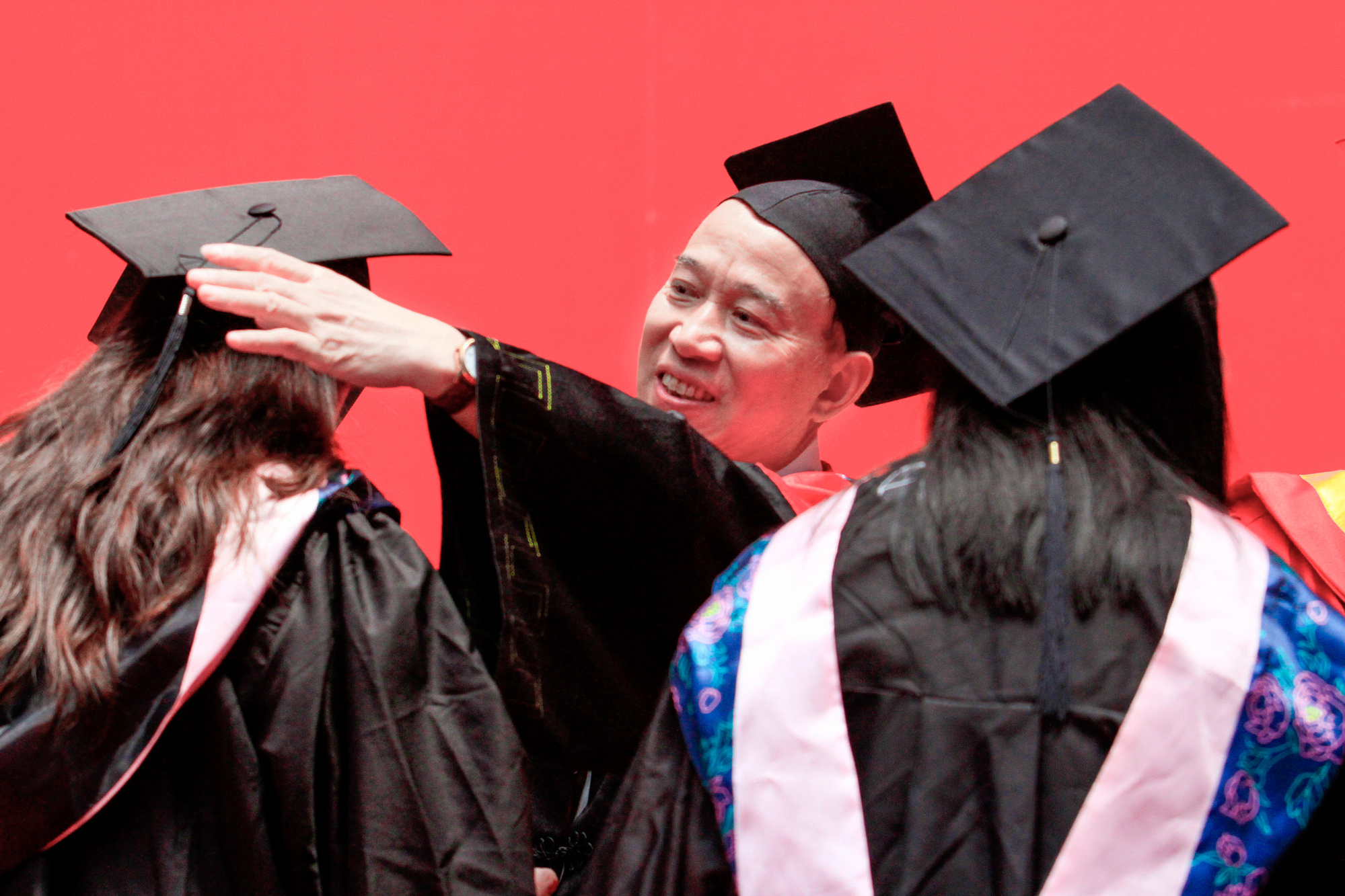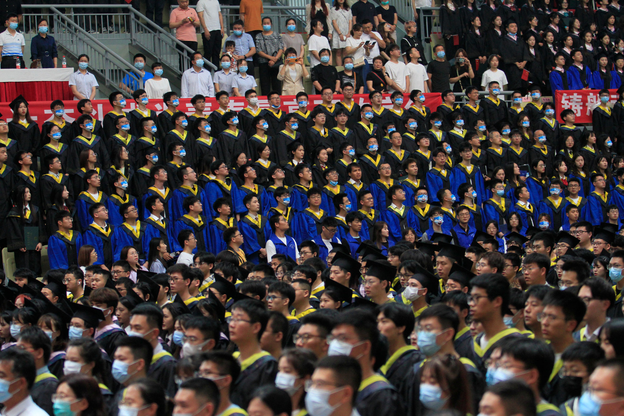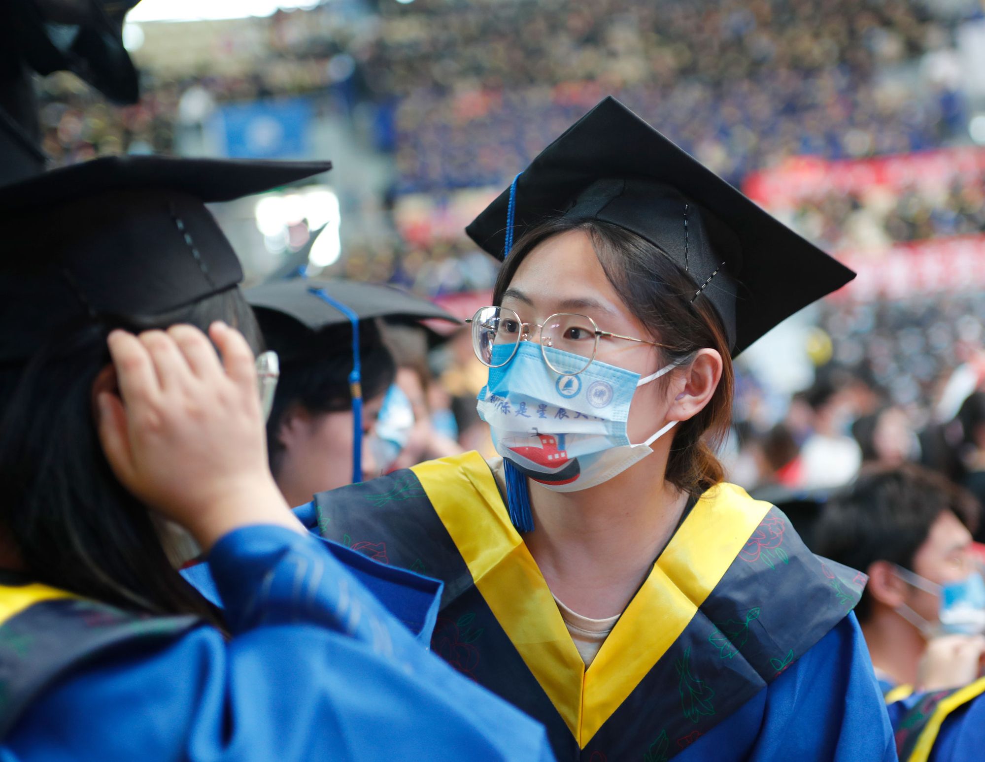 在新蒲京娱乐场官网3245校歌声中,数千只蓝白相间的彩色气球从高空缓缓散落,仿佛跃腾的海浪,将现场氛围感拉满。伴着一路欢歌,庄重的学位授予仪式开始,毕业生依次上台领取学位证书,学位委员会全体导师为他们一一拨穗,圆满完成学位授予仪式。