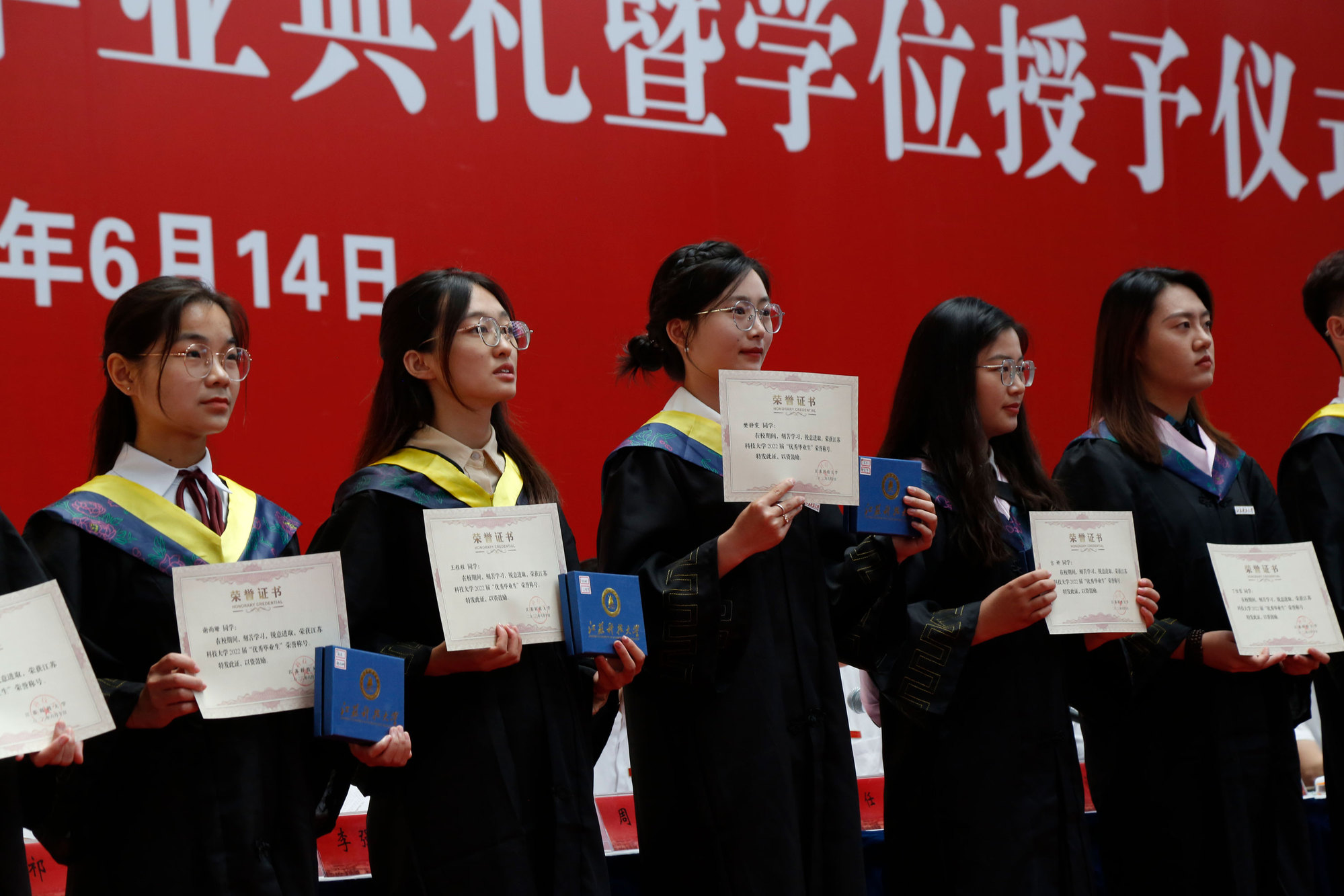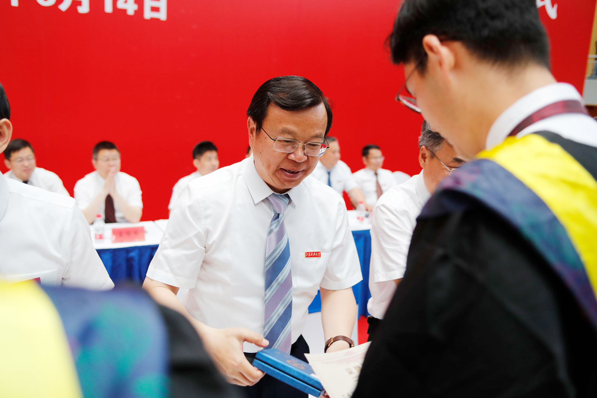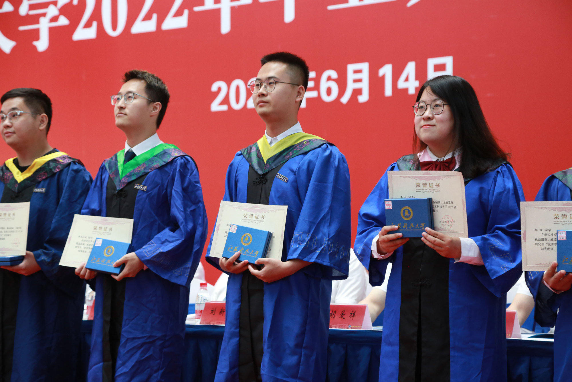 党委常委、副校长任南宣读《关于准予2022届本科学生毕业的决定》《关于授予2022届本科毕业生学士学位的决定》。副校长王加友宣读《关于准予2022届博士、硕士研究生毕业的决定》和《关于授予2022届研究生博士学位、硕士学位的决定》。校党委副书记、副校长景旭文宣读《关于表彰新蒲京娱乐场官网32452022届本科“优秀毕业生”的决定》《关于表彰新蒲京娱乐场官网32452022届研究生“优秀毕业生”的决定》。校领导和导师们为毕业生代表发放毕业证书,为优秀毕业生颁发荣誉证书、赠送毕业印章。