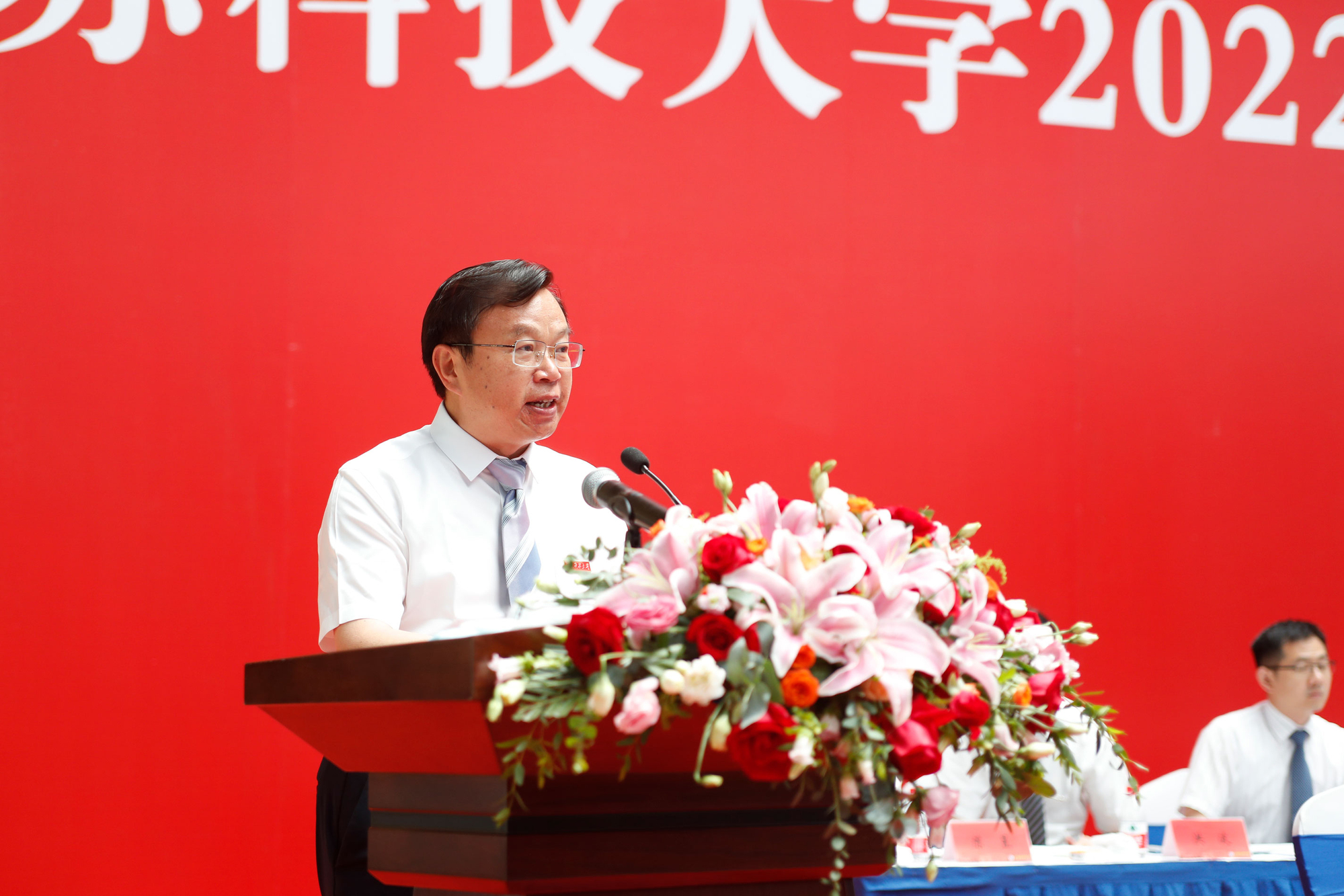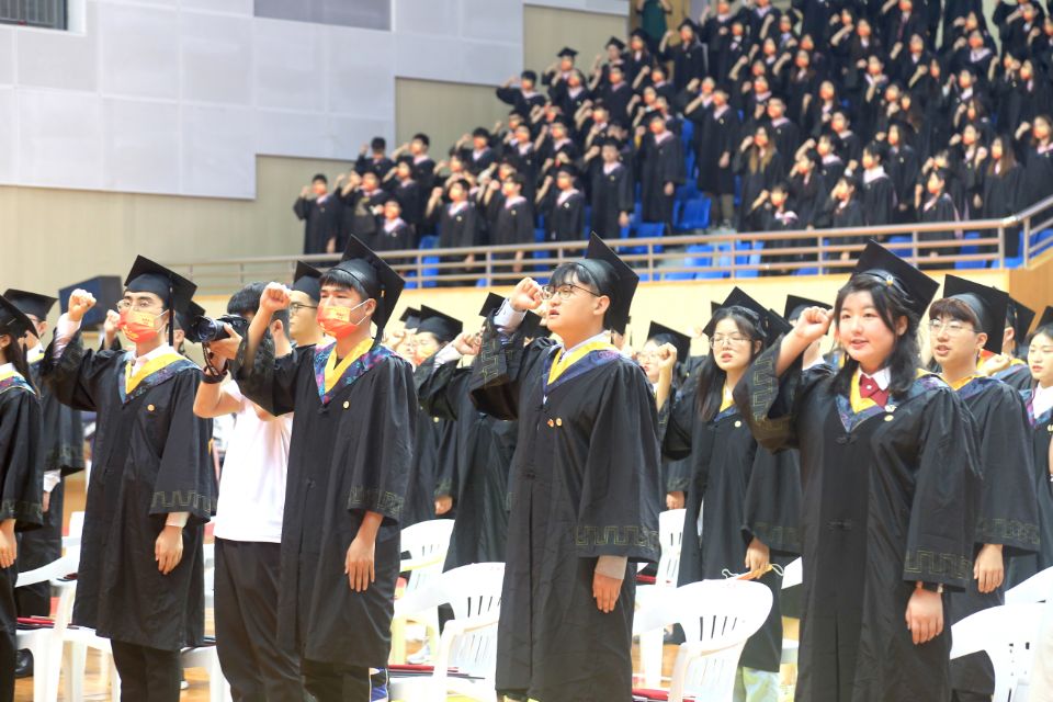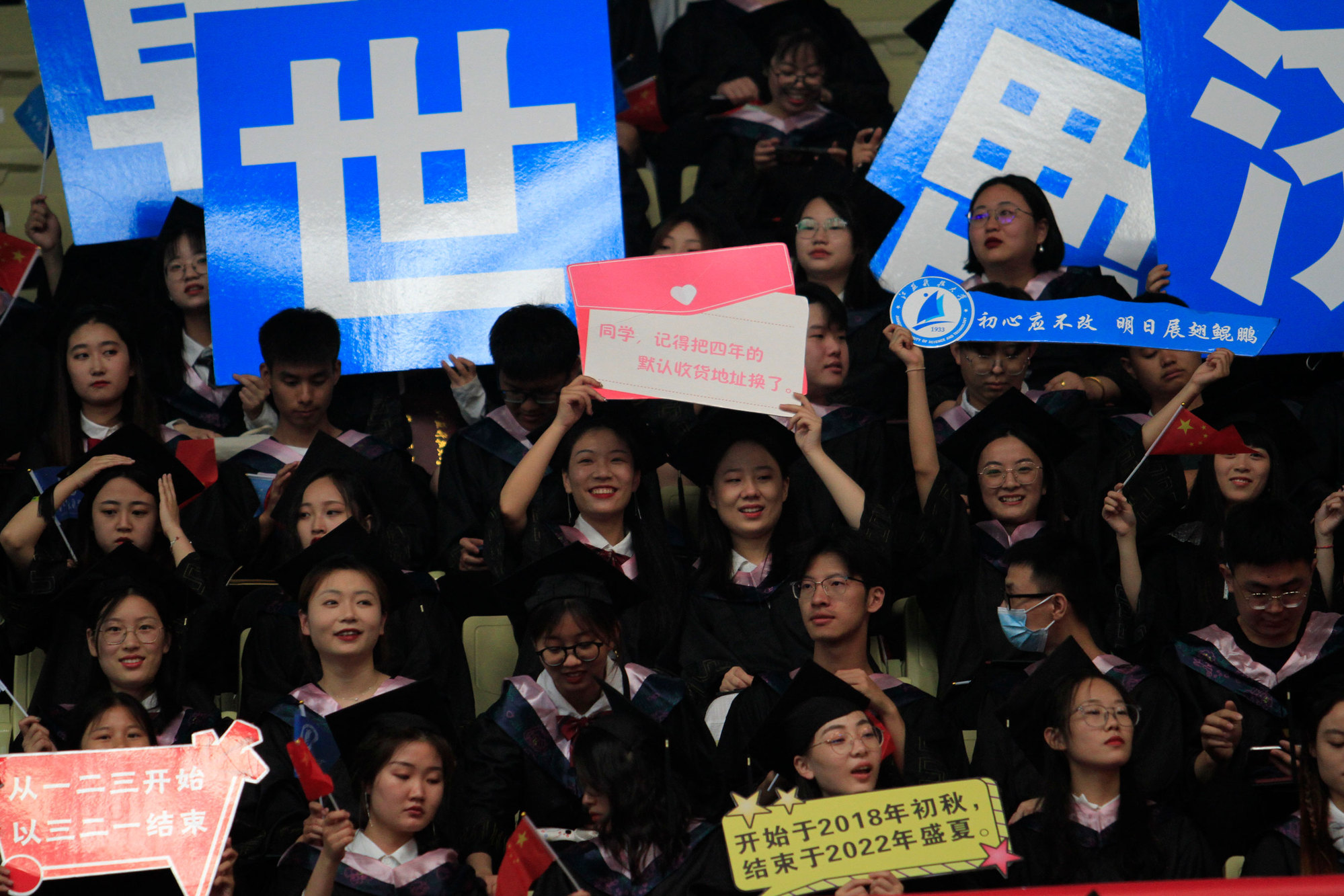 2022届毕业生当中,有1179名同学收到了研究生录取通知书,其中,境外高校留学62人、“双一流”高校录取611人,全员录取的考研学霸寝室有20个;186名同学成为学校新成立的海洋学院的首批毕业生;有22人报名参军立志保家卫国;有2885名同学作出了就业选择,其中到船舶行业单位工作的有281人,践行兴船报国梦想。“你们燃烧了青春的卡路里,也拼出了青春硬实力”,周南平细数闪亮的“江科大女孩”和“江科大男孩”在江科大奋斗的青春故事,为用专业技能服务广大蚕农的朱大林同学骄傲,为被中铁集团孟加拉分公司录取孟加拉国留学生马林同学叫好,向460余名化身“大白”“小蓝”“红马甲”的同学表达谢意……