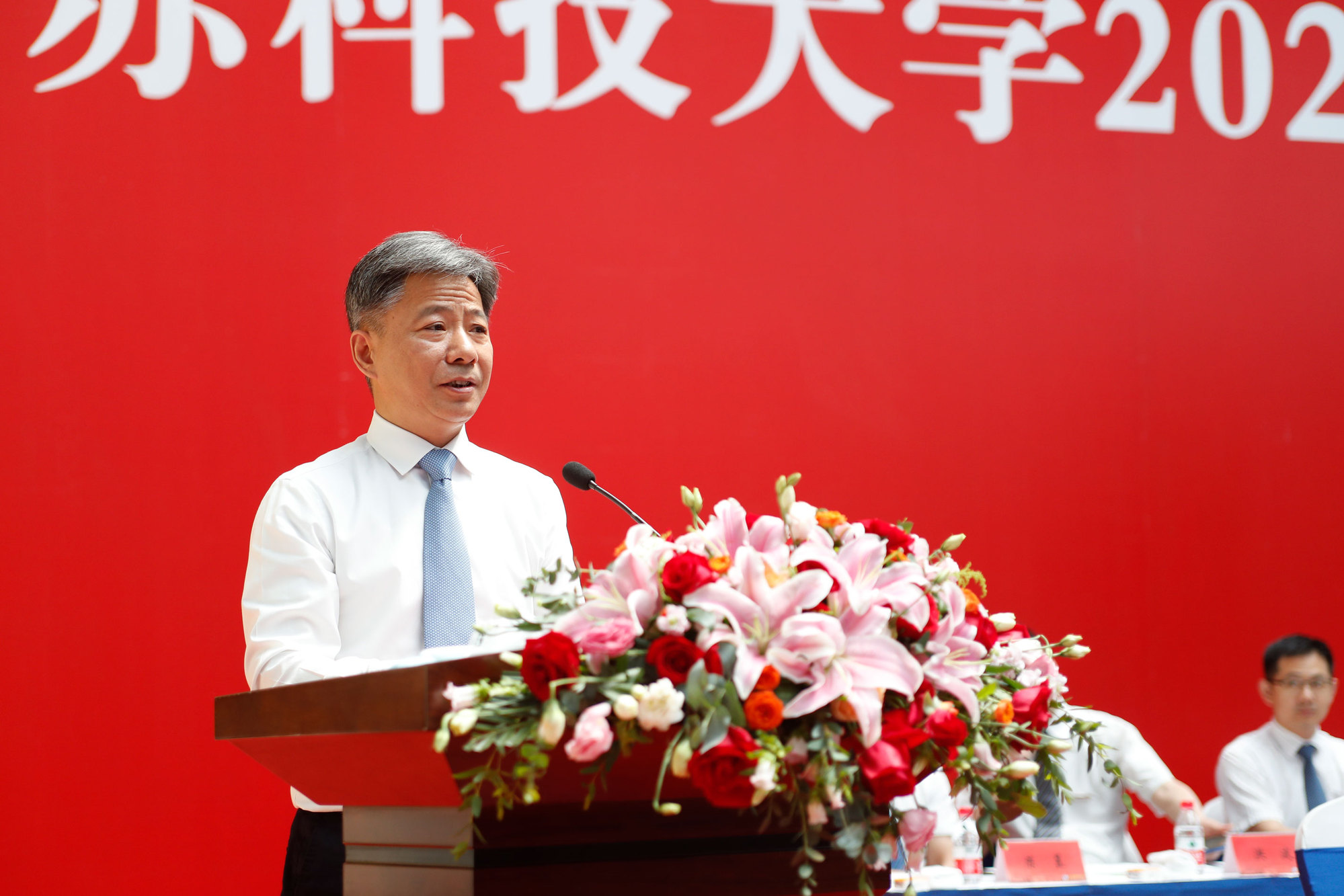 1990届校友、扬州中远海运重工有限公司总经理翟亚军结合自身成长经历和多年来的工作经历,期望毕业生们“勤学不辍,练就过人本领;海纳百川,铸就博大胸怀;脚踏实地,培育从容定力;胸怀家国,展现使命担当。”