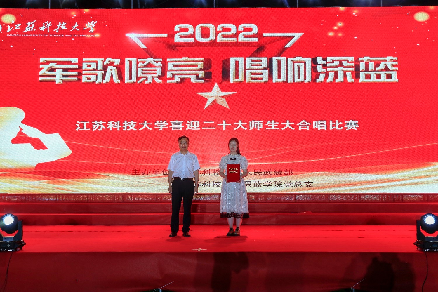 校党委副书记、副校长景旭文在开场致辞中,勉励广大同学展现良好的精神风貌,唱出英雄气概,唱出胸中豪迈,唱出年轻未来,把我们对党的热爱,对远大理想的追求,都融入今晚的合唱中,展现出江科大莘莘学子昂扬向上的精神面貌。