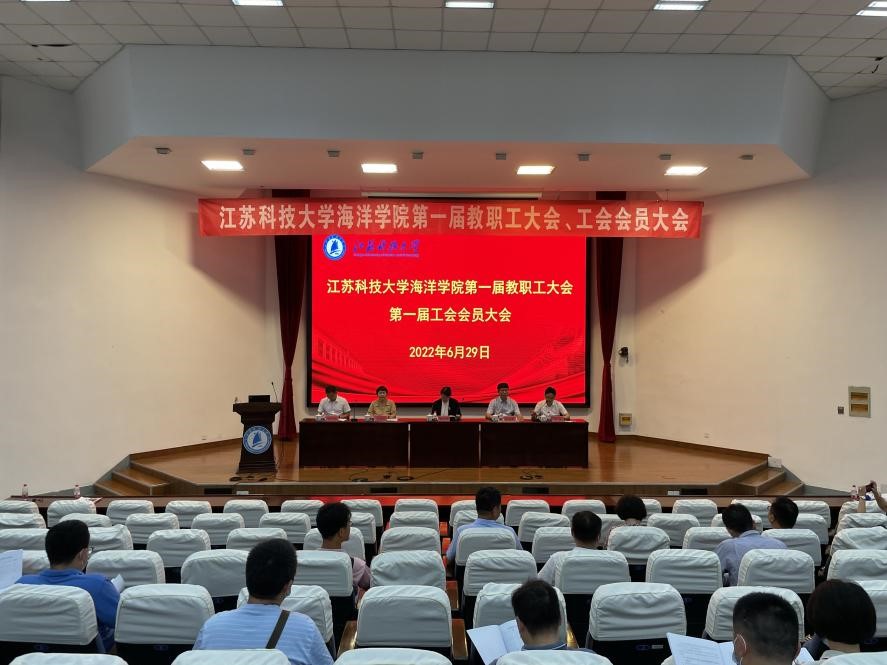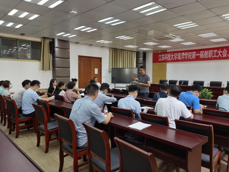 伴随着校歌,海洋学院第一届全体教职工大会、工会会员大会胜利闭幕。